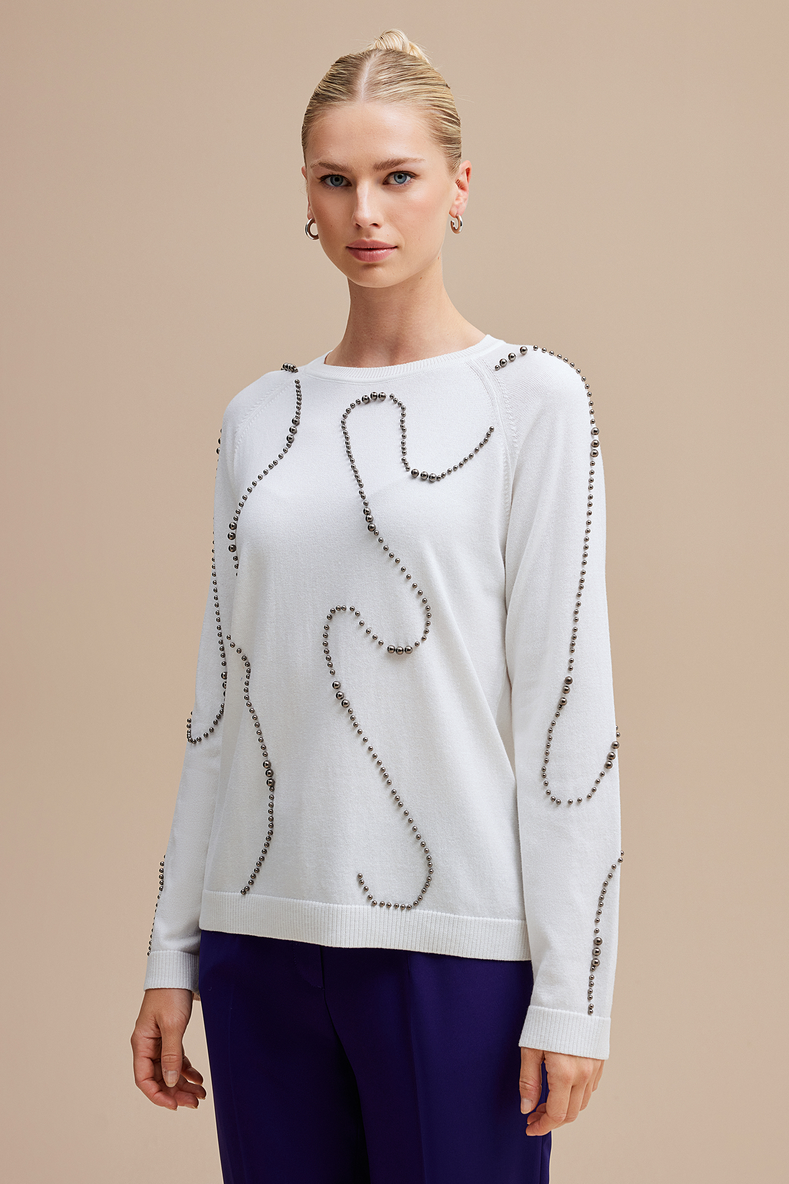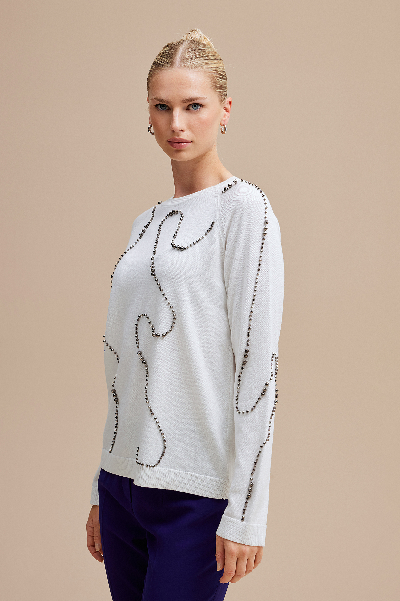 NaraMaxx'in triko kazak koleksiyonu, her detayında kalite ve şıklığı bir araya getiriyor. Boncuk işlemeli triko kazak modelleri, siyah ve ekru renk seçenekleriyle zarafeti farklı bir boyuta taşıyor. Ön yüzündeki boncuk işlemeler, kazağa özel bir dokunuş katarken, pamuk ve akrilik karışımı kumaşıyla yumuşak ve konforlu bir kullanım sunuyor.