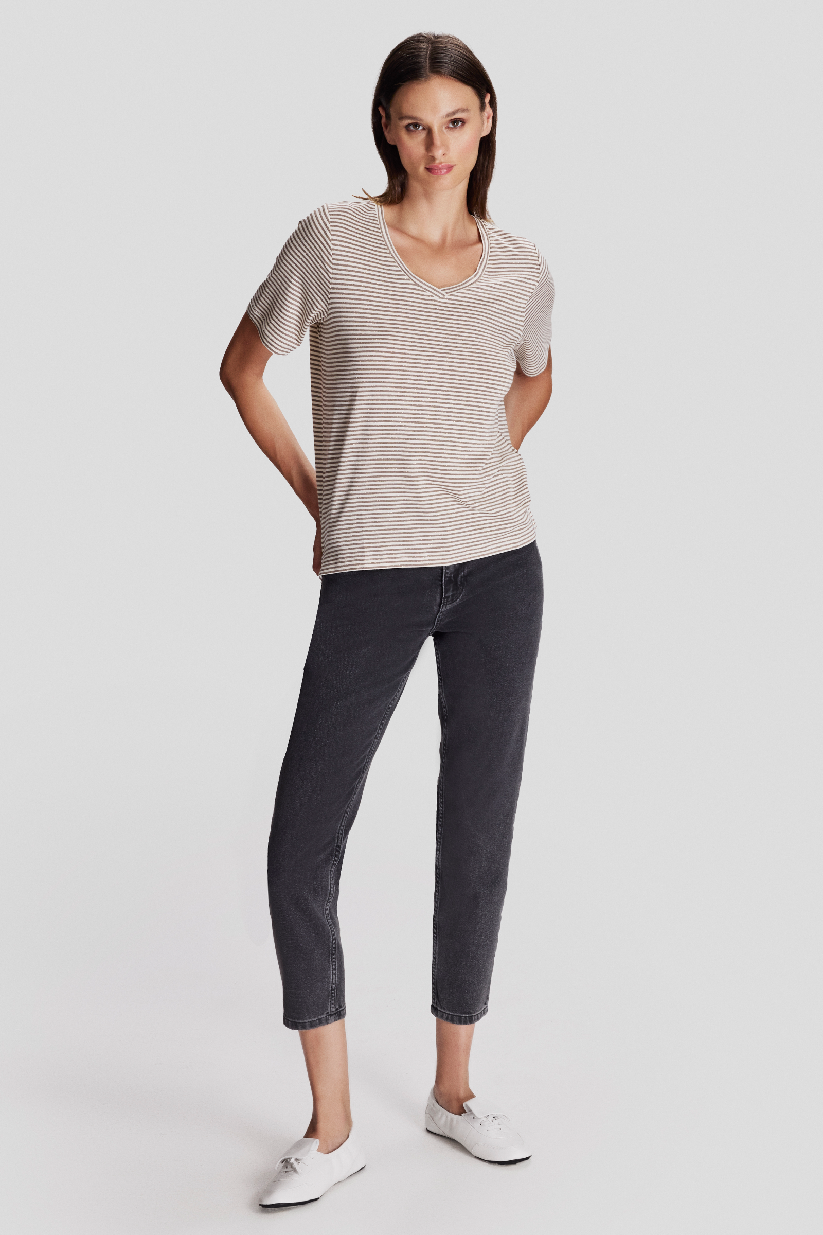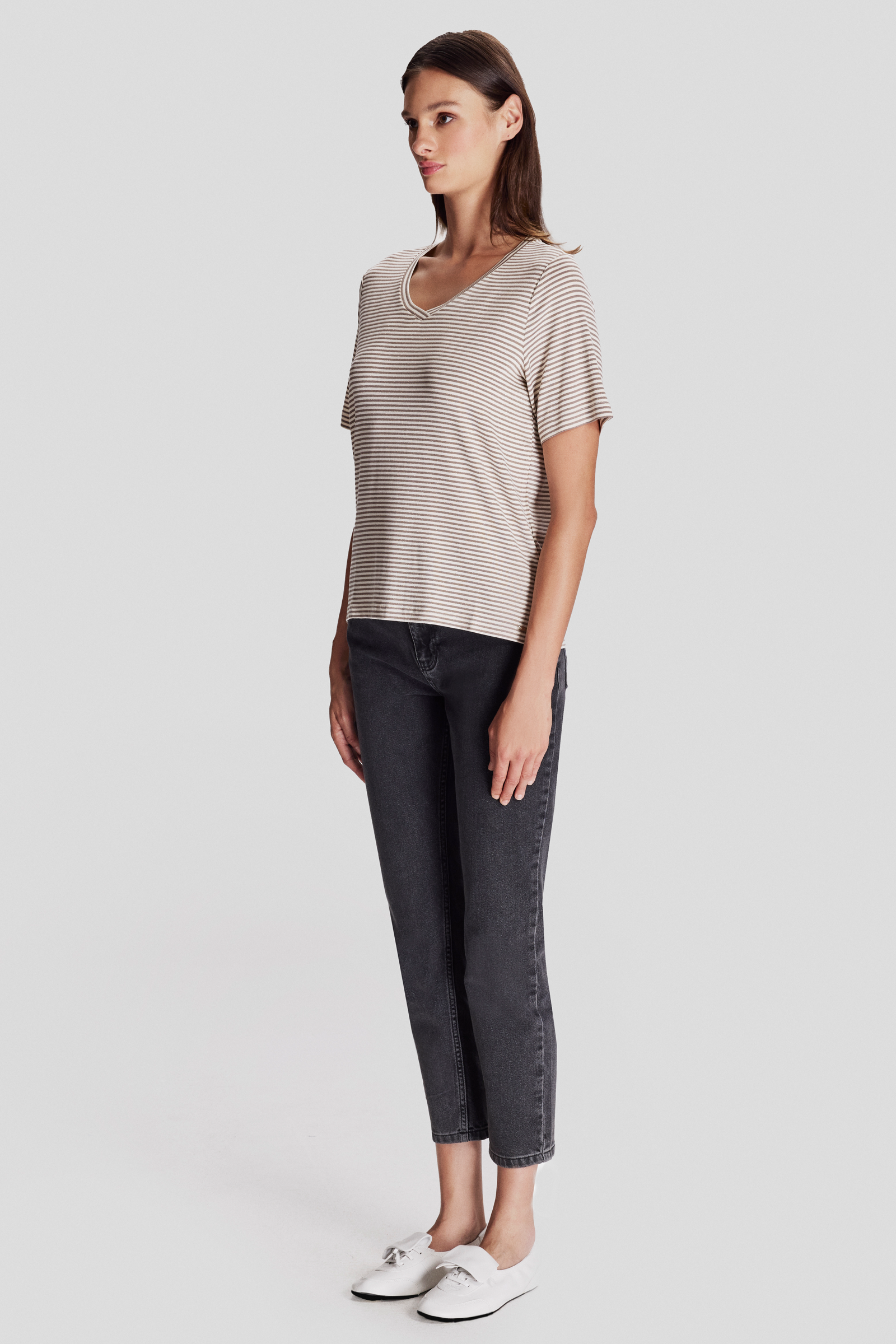 V Yaka Çizgili T-shirt
