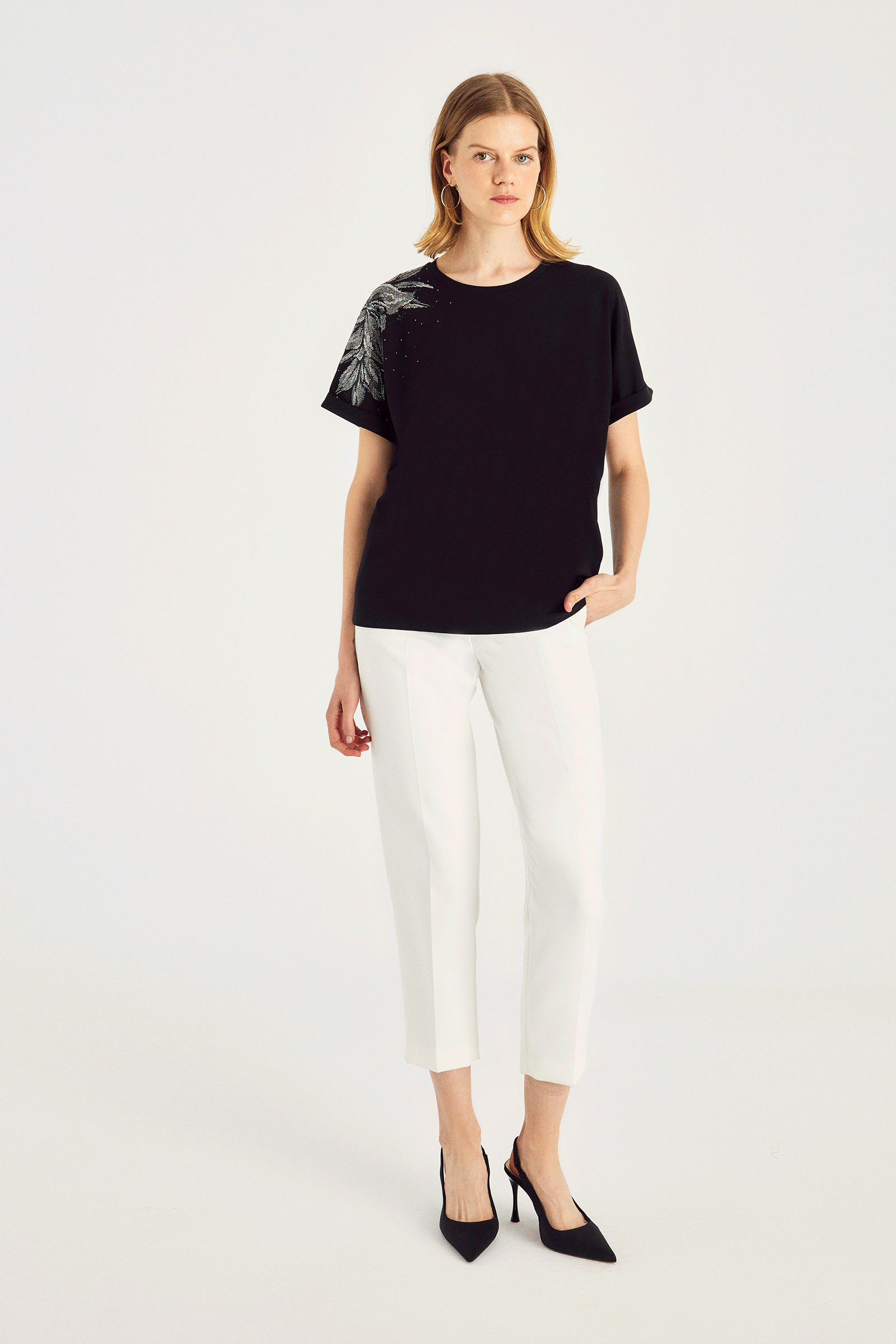 Omuzu Taş Basklı Bluz