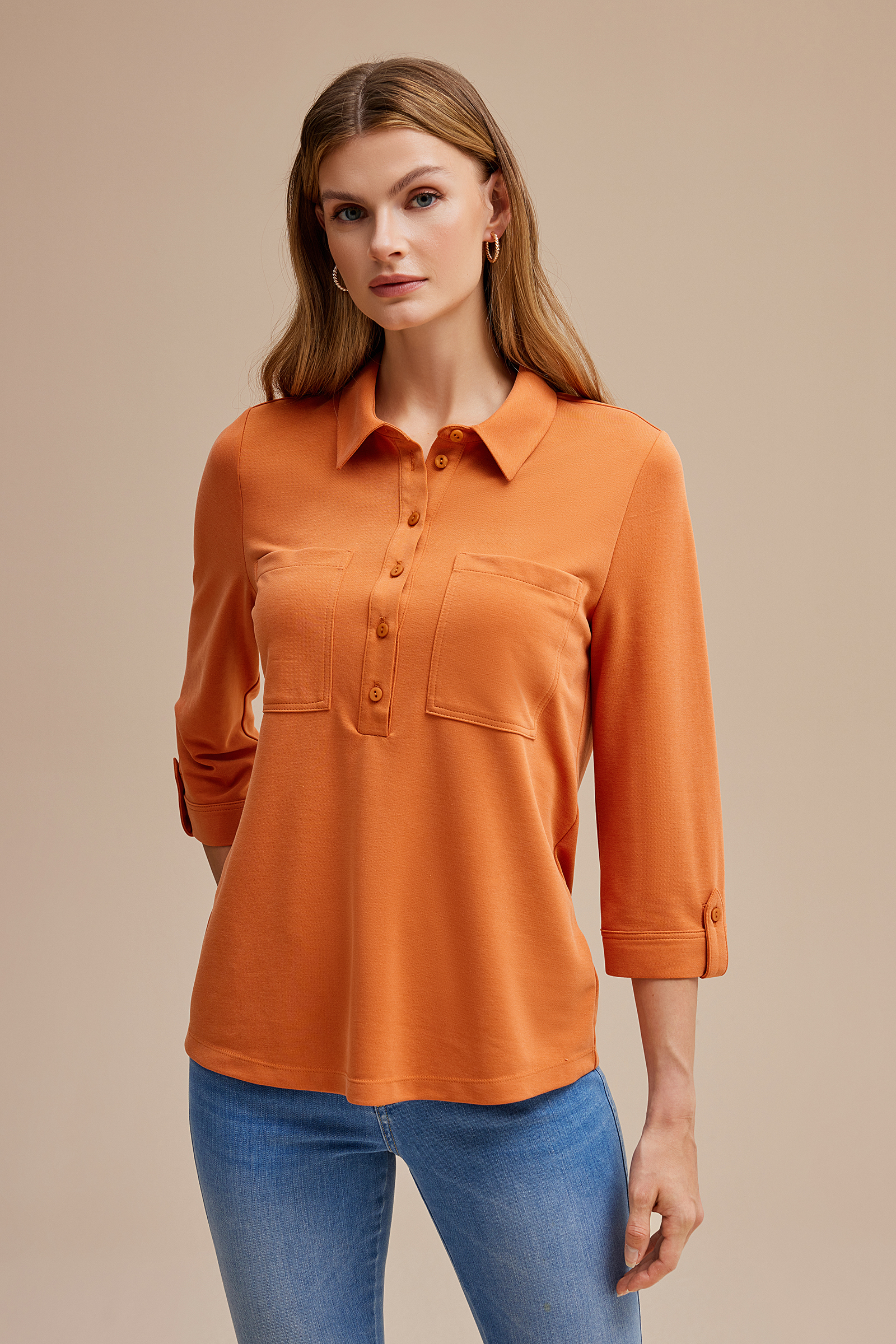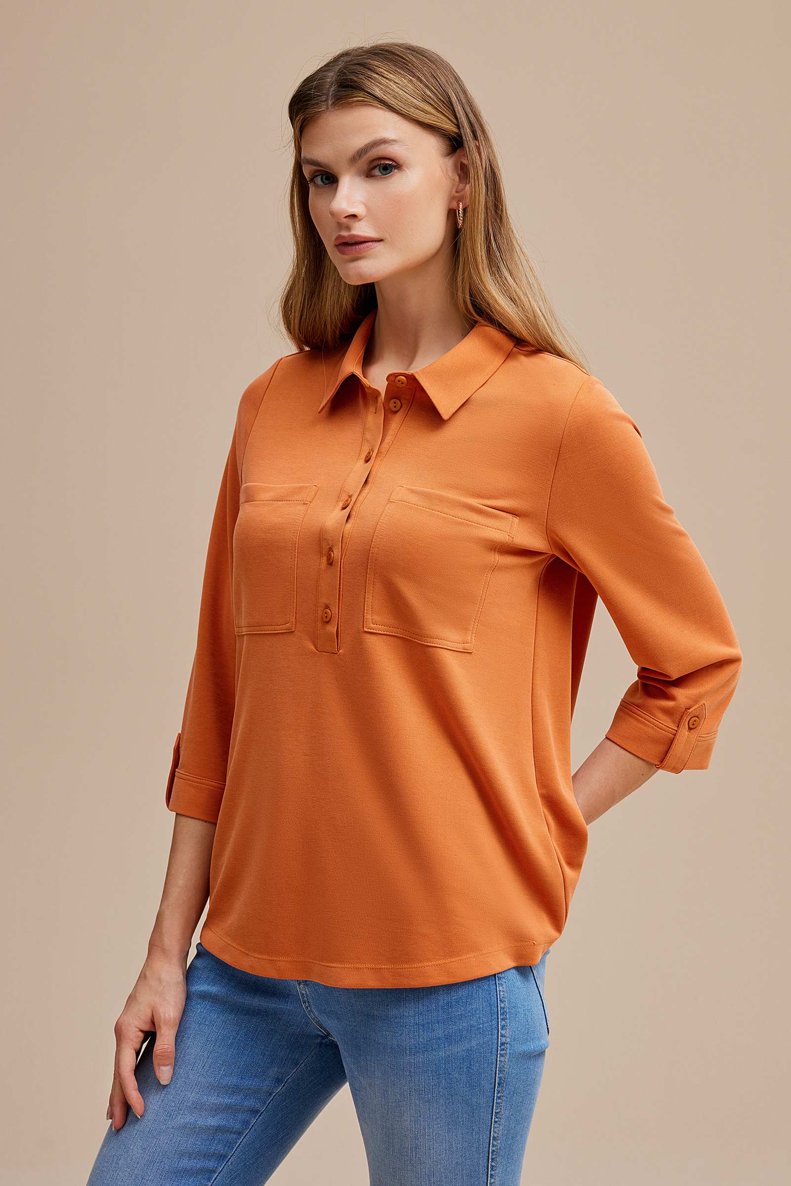 Gömlek Yaka Yarım Patlı Örme Bluz