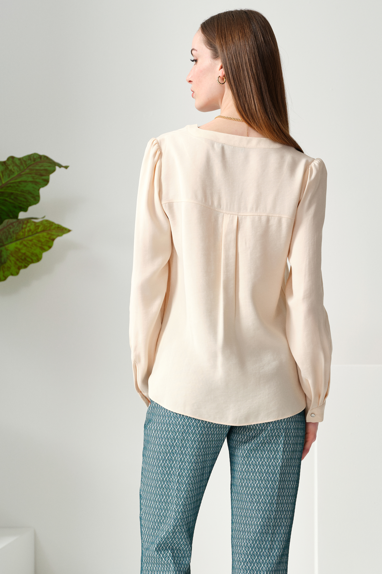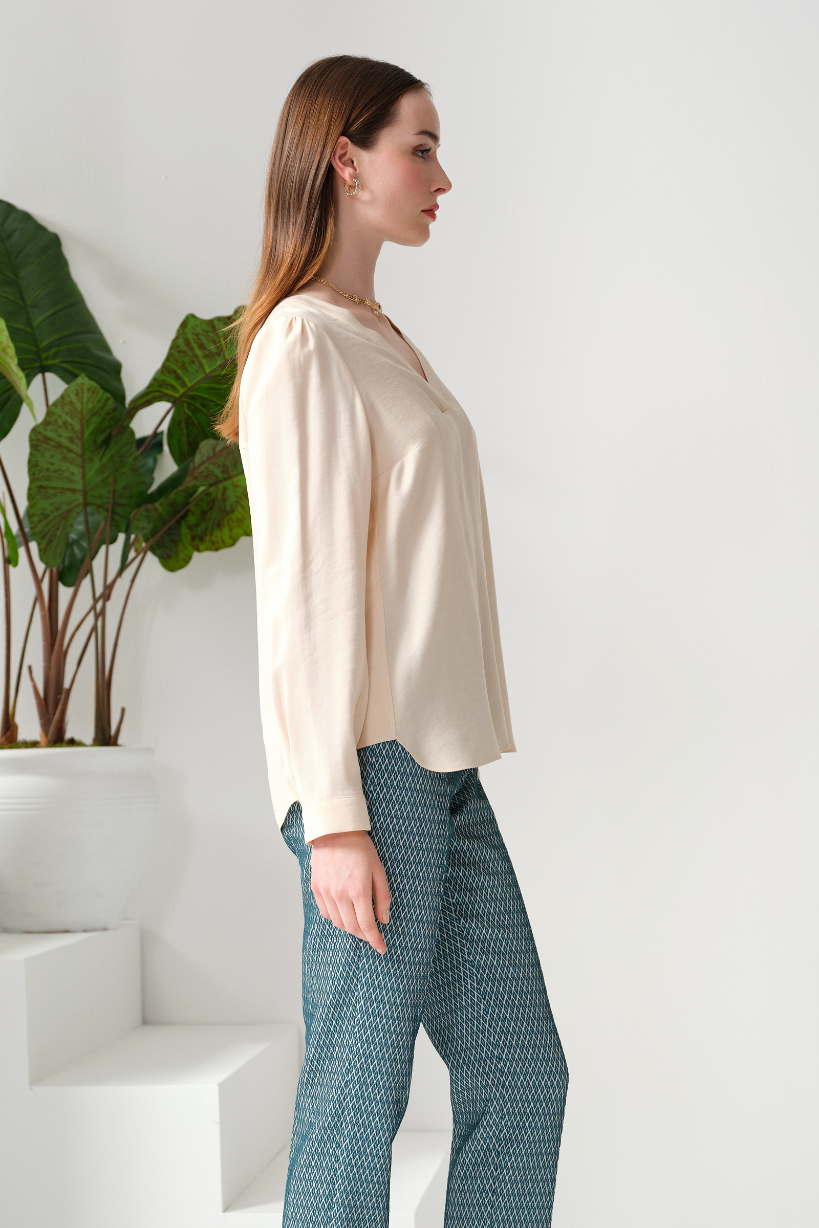 V Yaka Yumuşak Dokulu Bluz