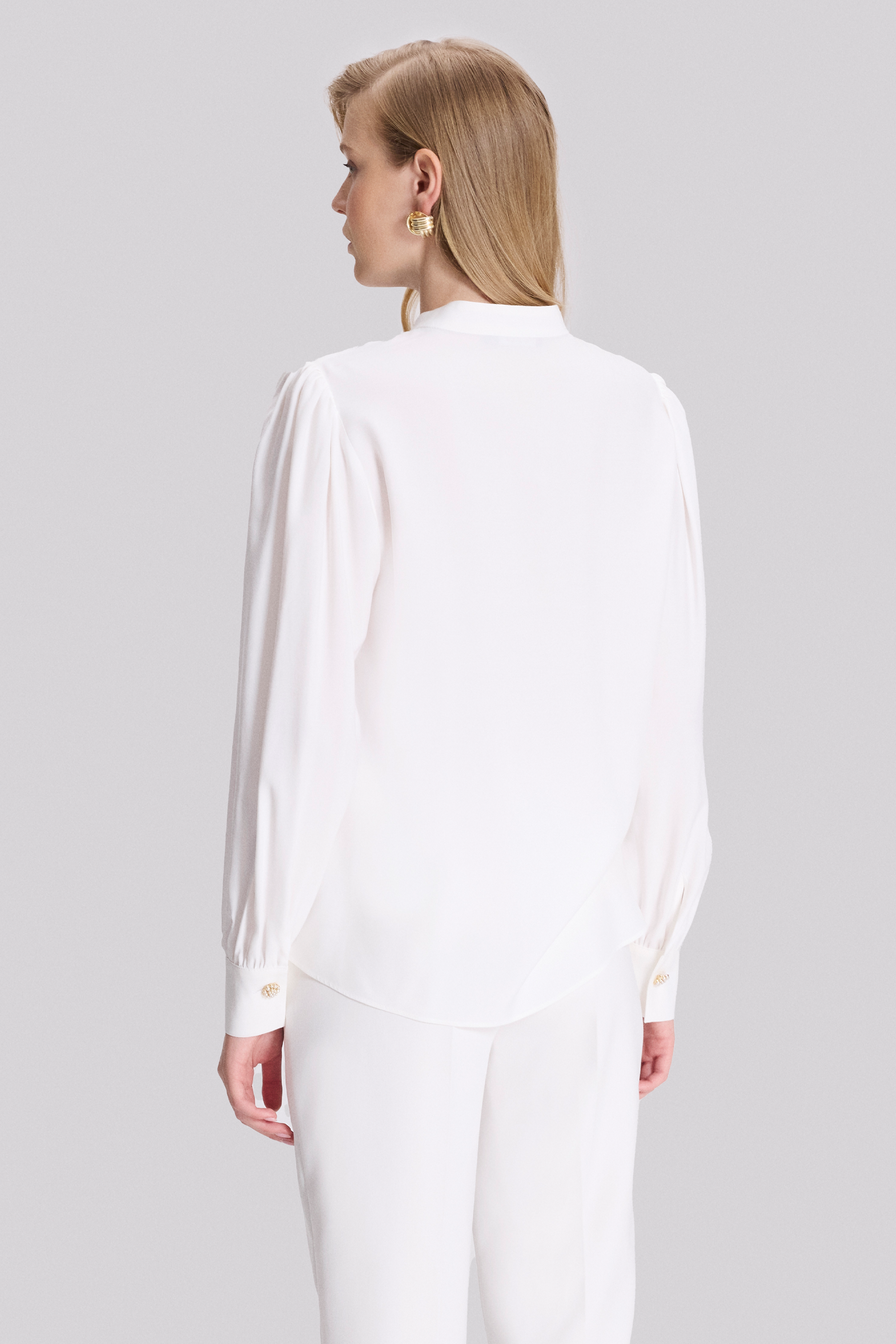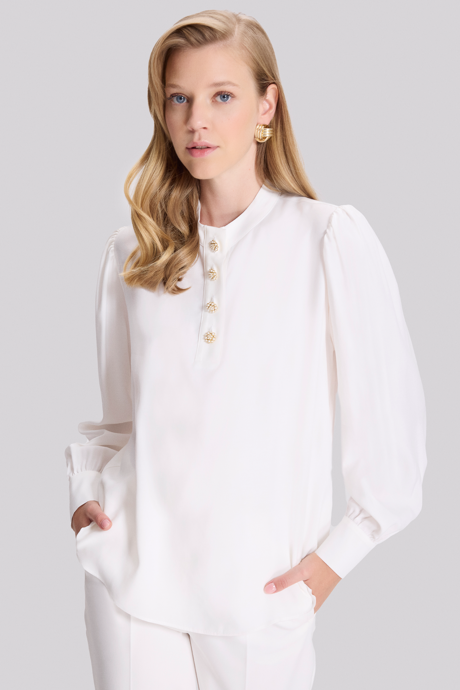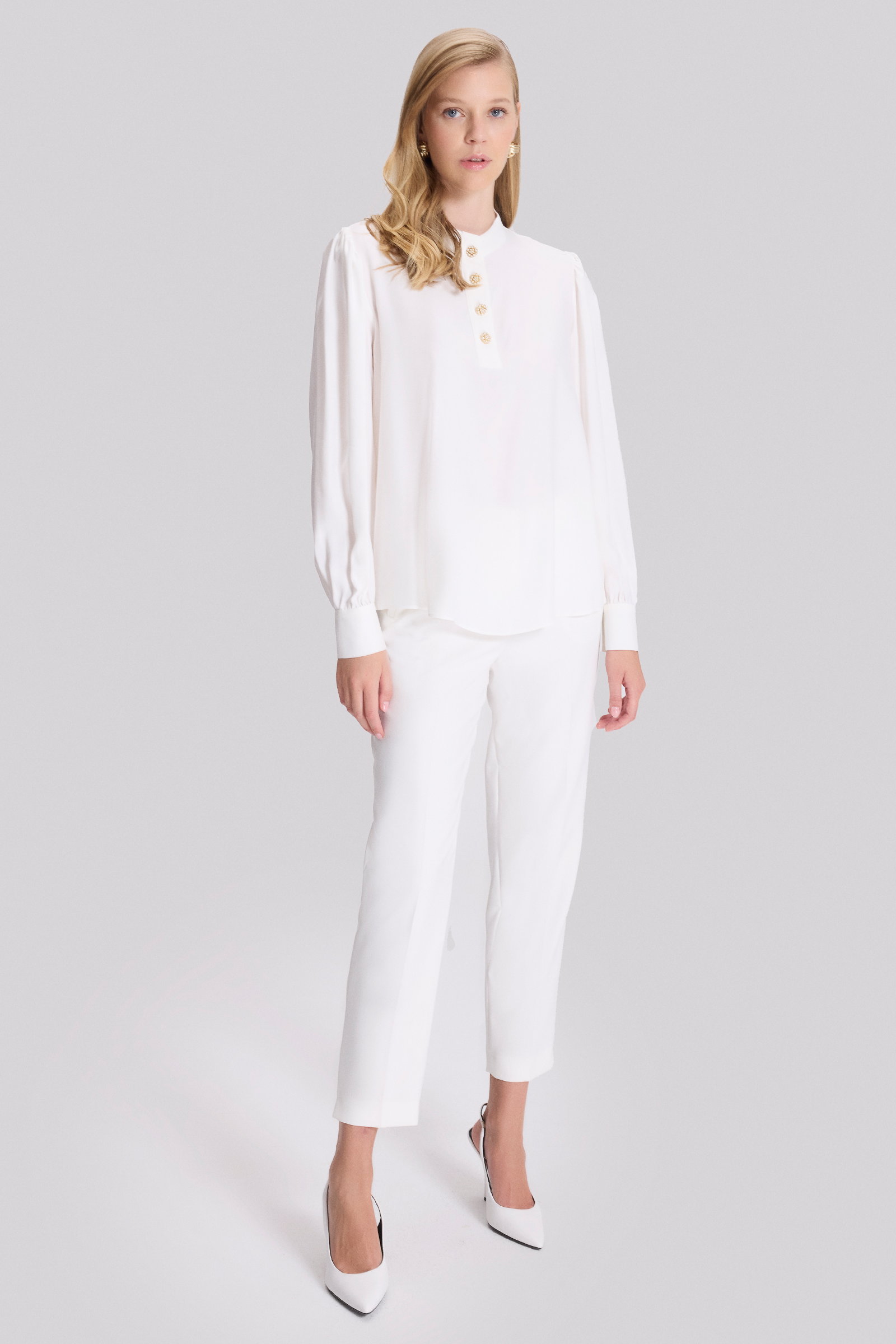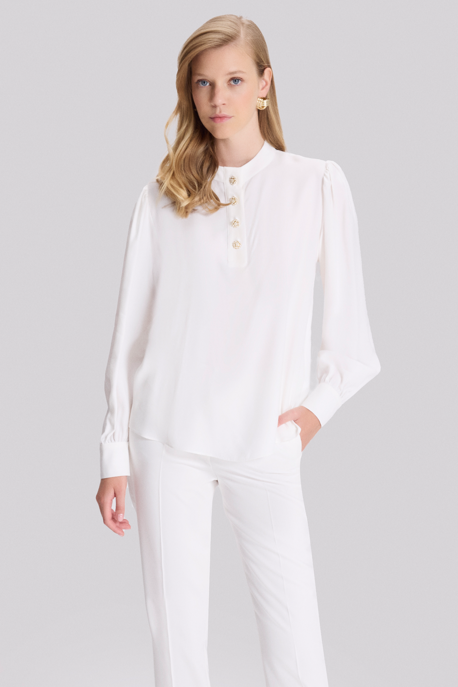 Düğmeli Dik Yaka Bluz