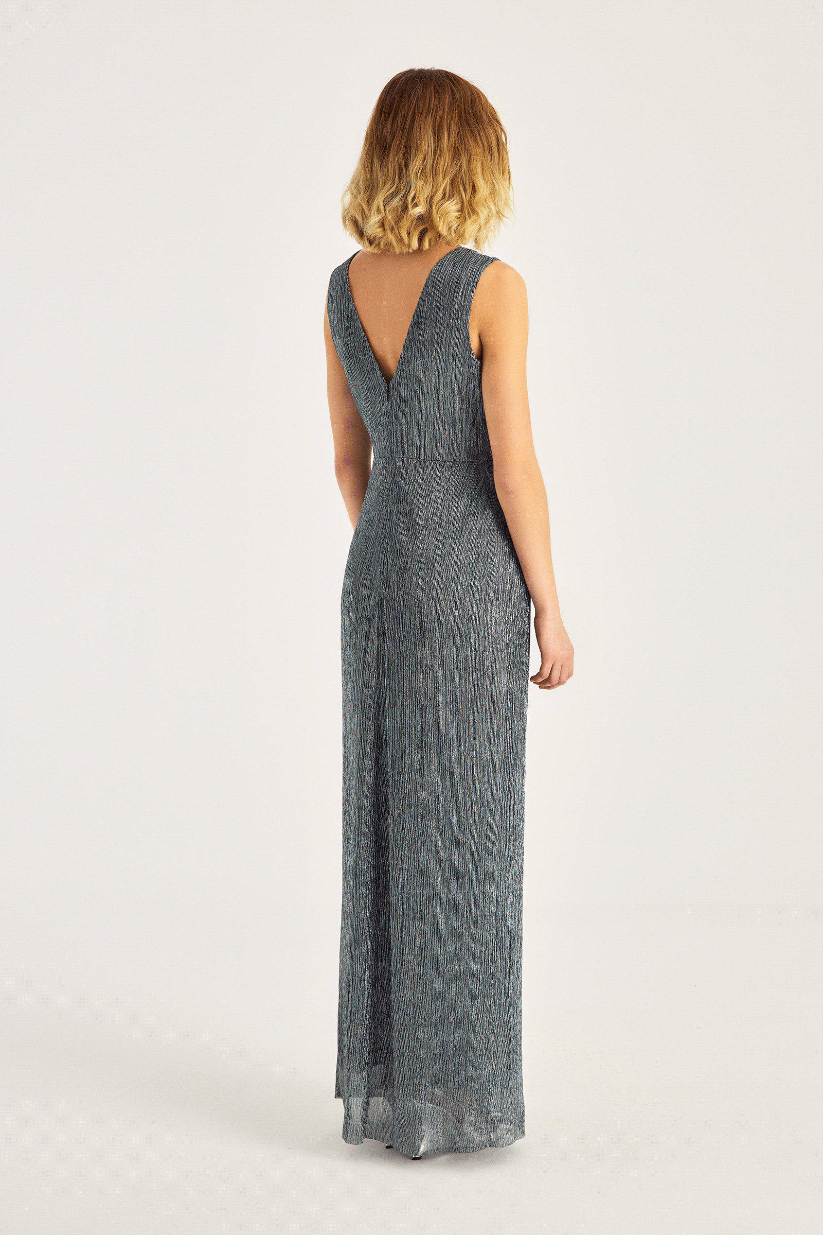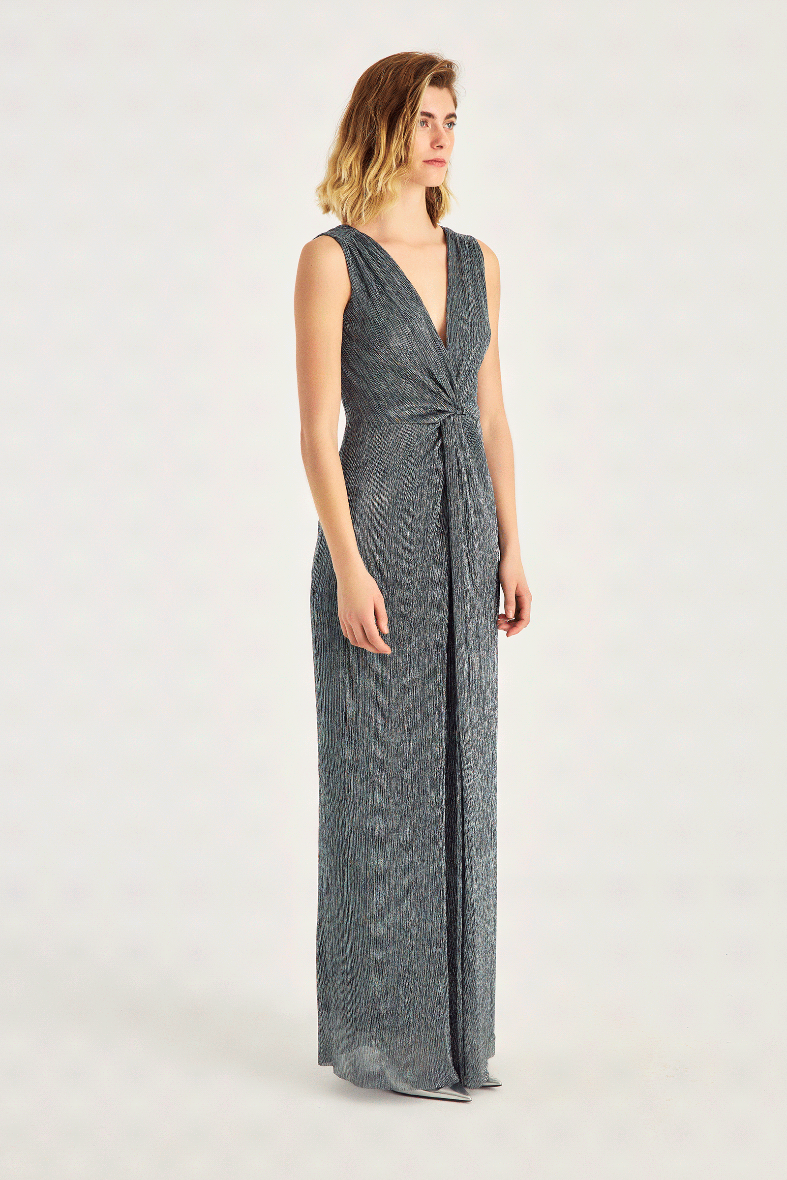 Yırtmaçlı Burgu Detaylı Şık Maxi Elbise