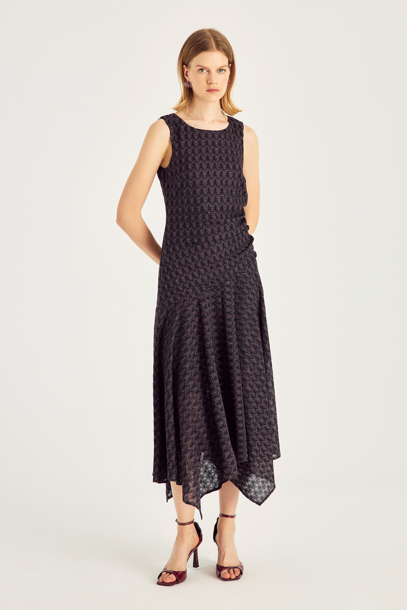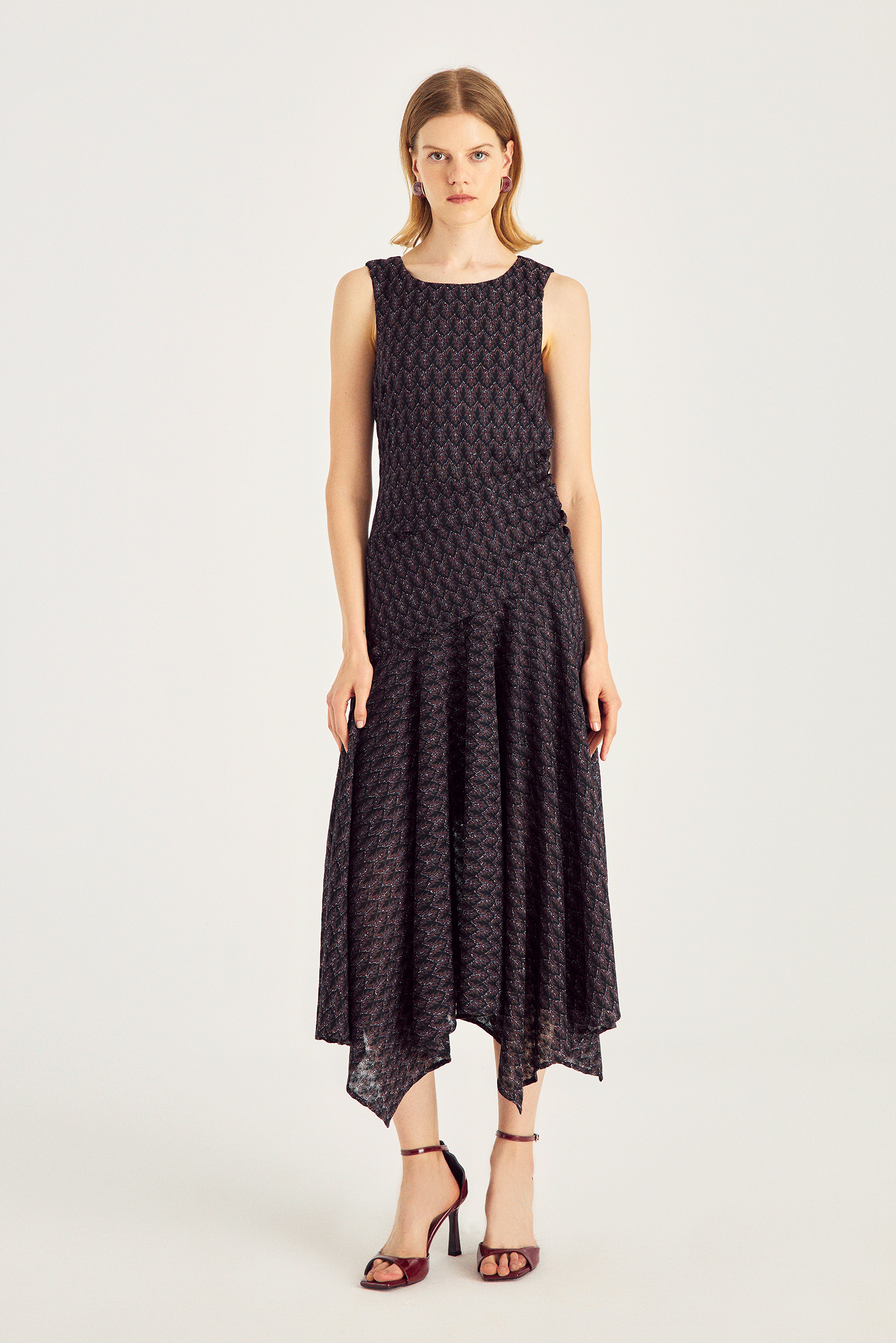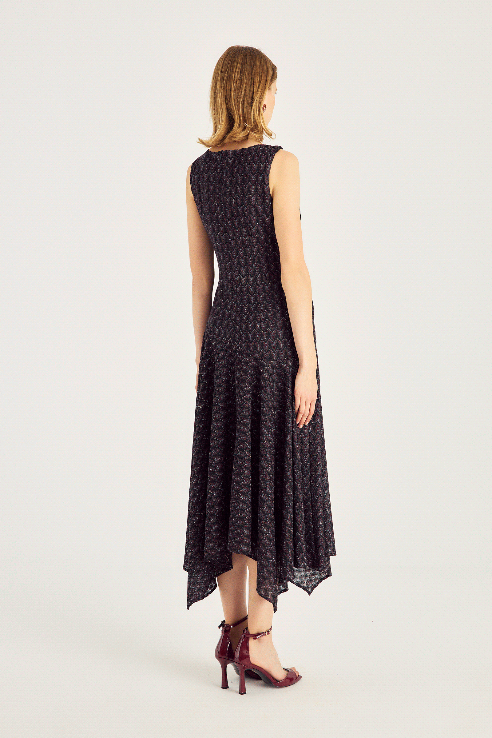 Asimetrik Kesim Midi Boy Dantel Elbise
