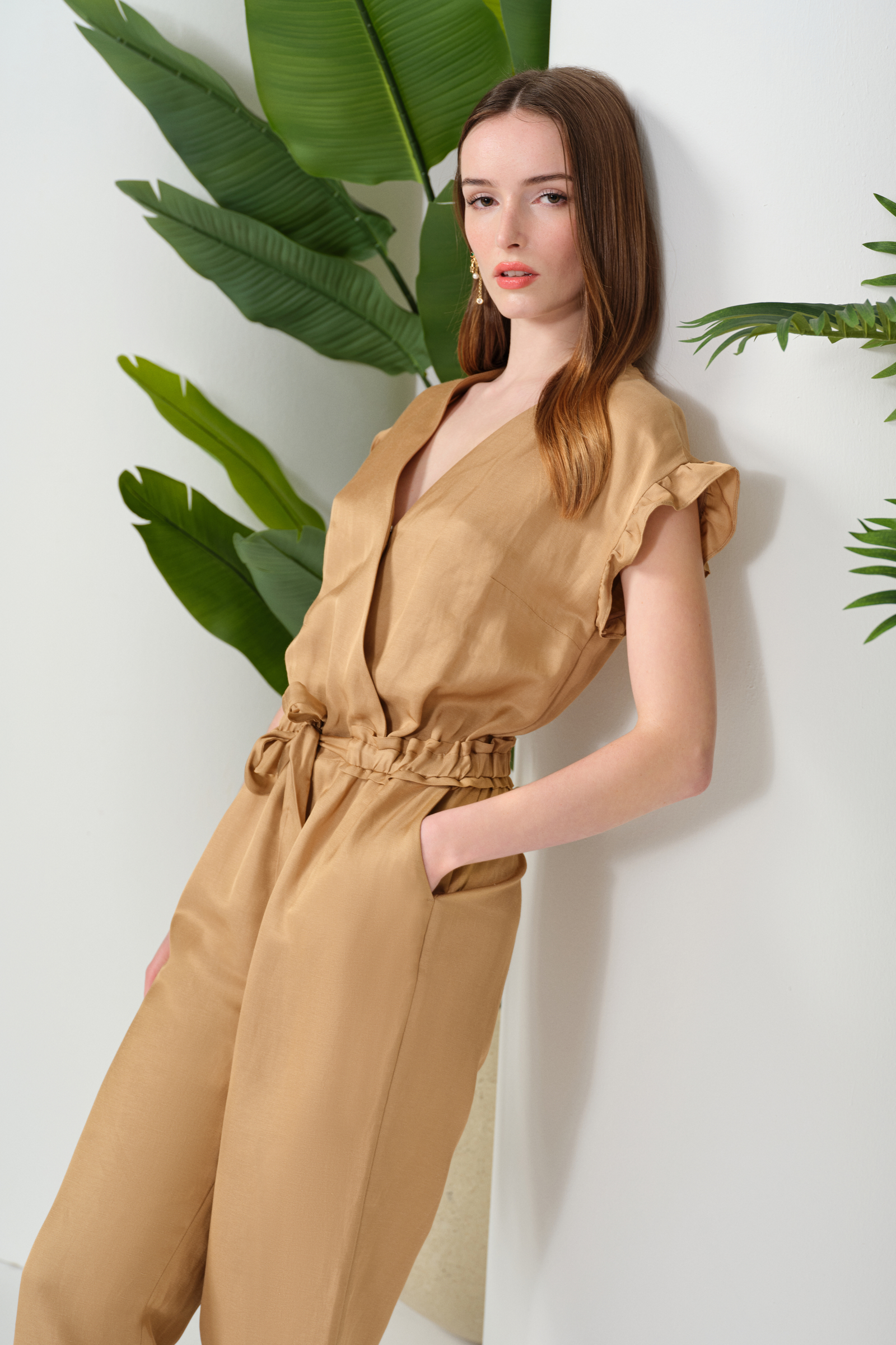 Fırfır Detaylı Kruvaze Tulum