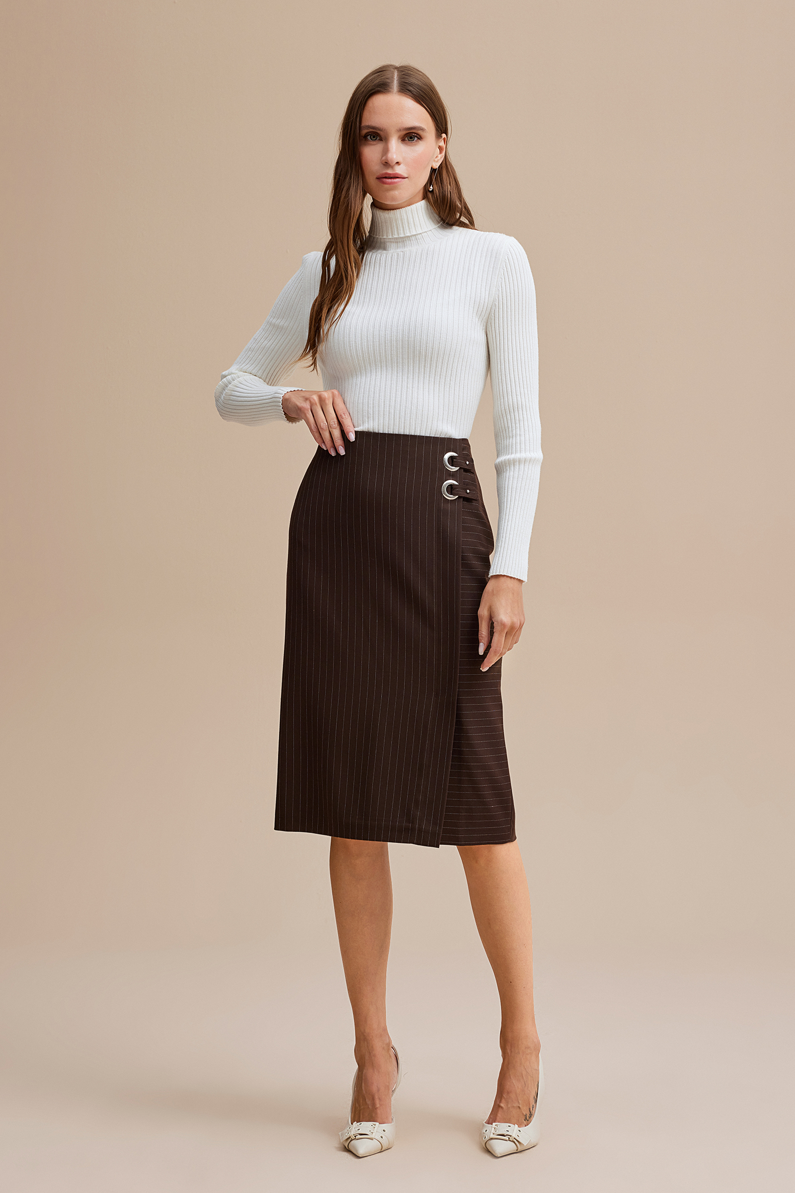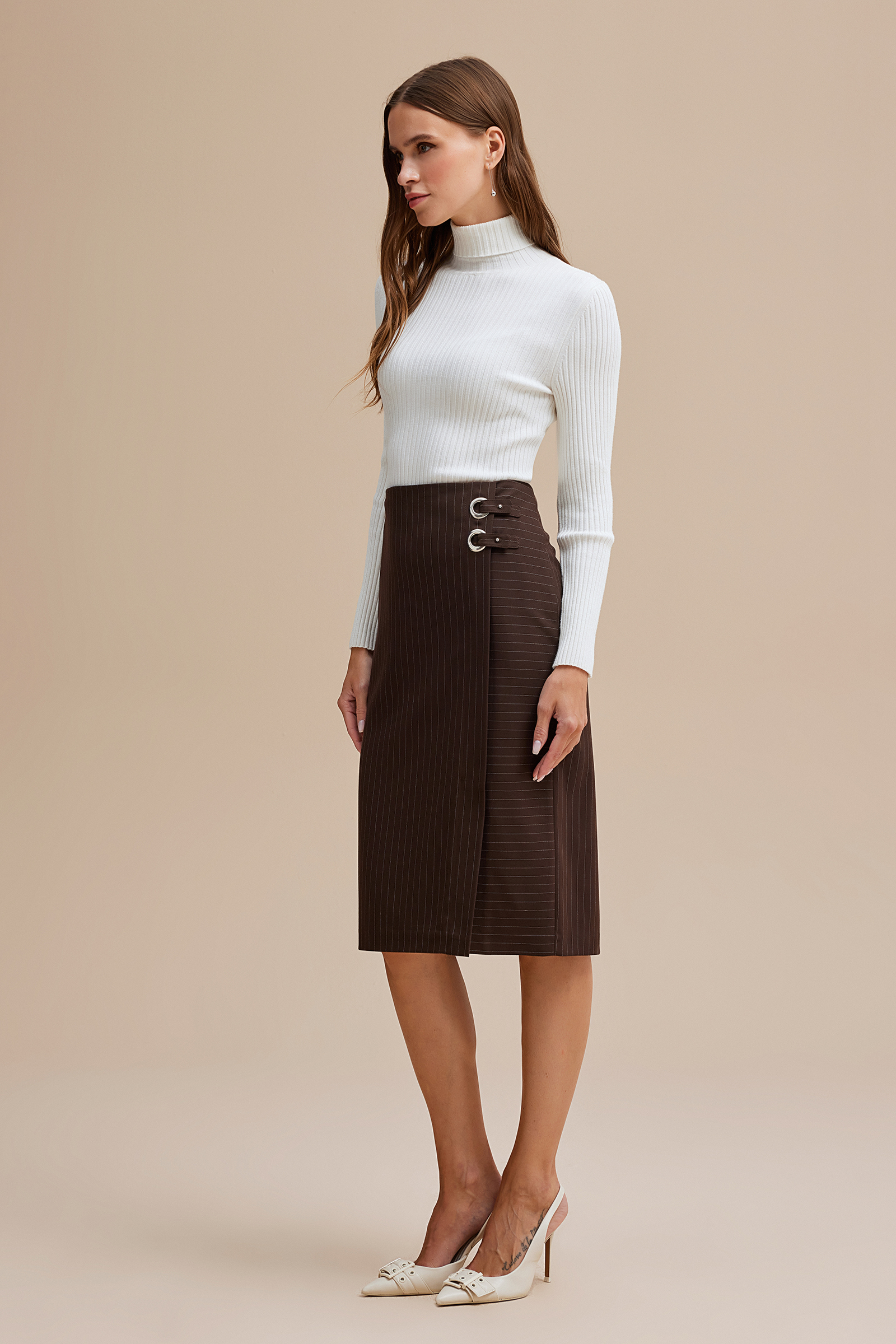Çizgili Midi Boy Etek