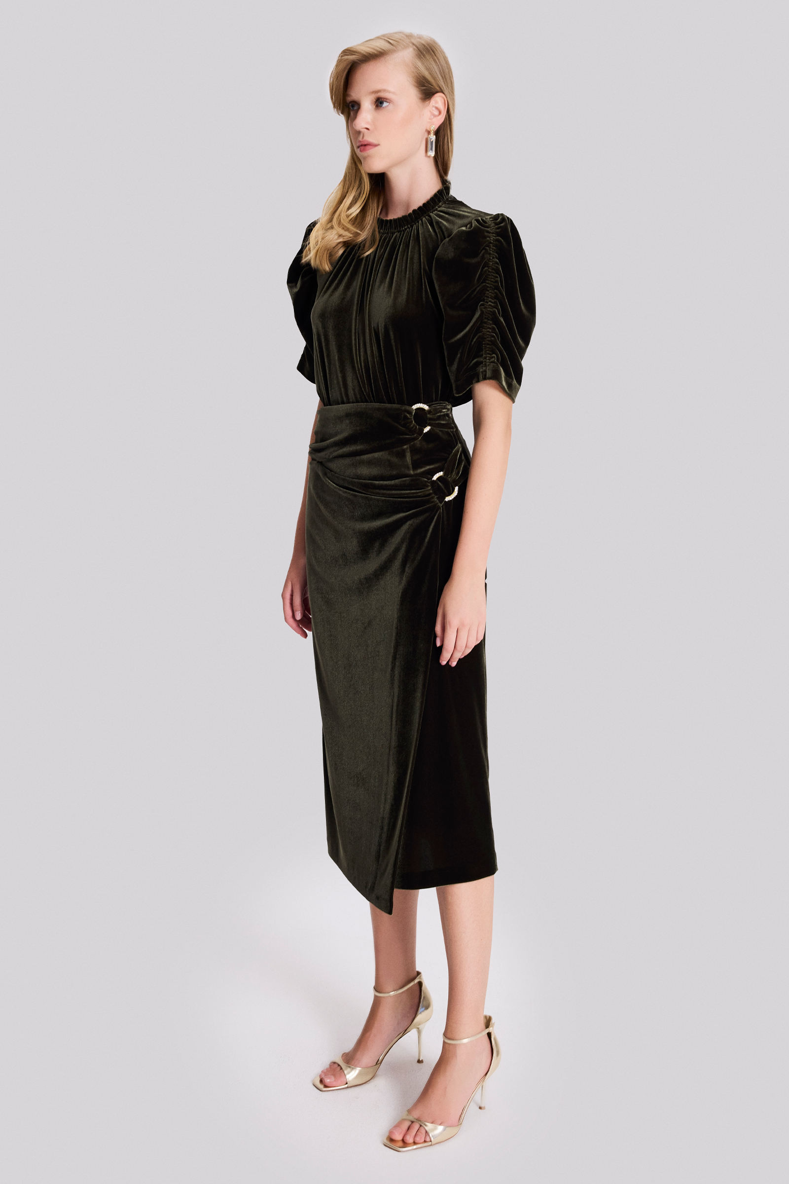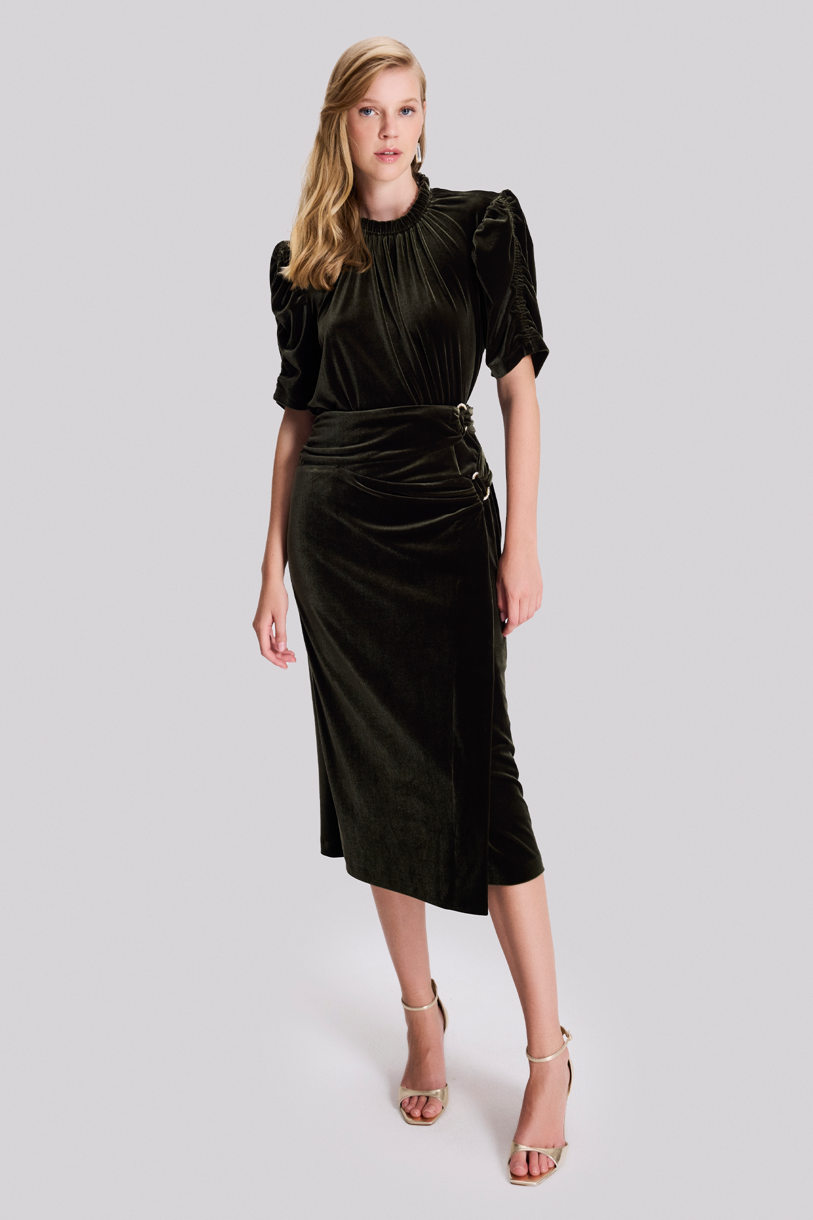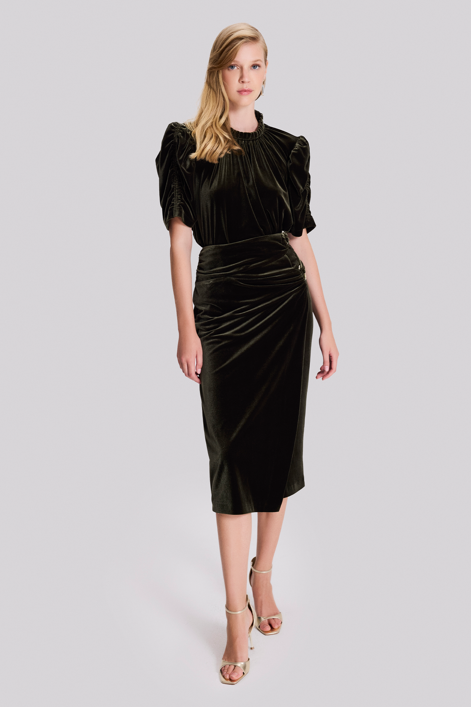 Aksesuar Detaylı Midi Boy Kadife Etek