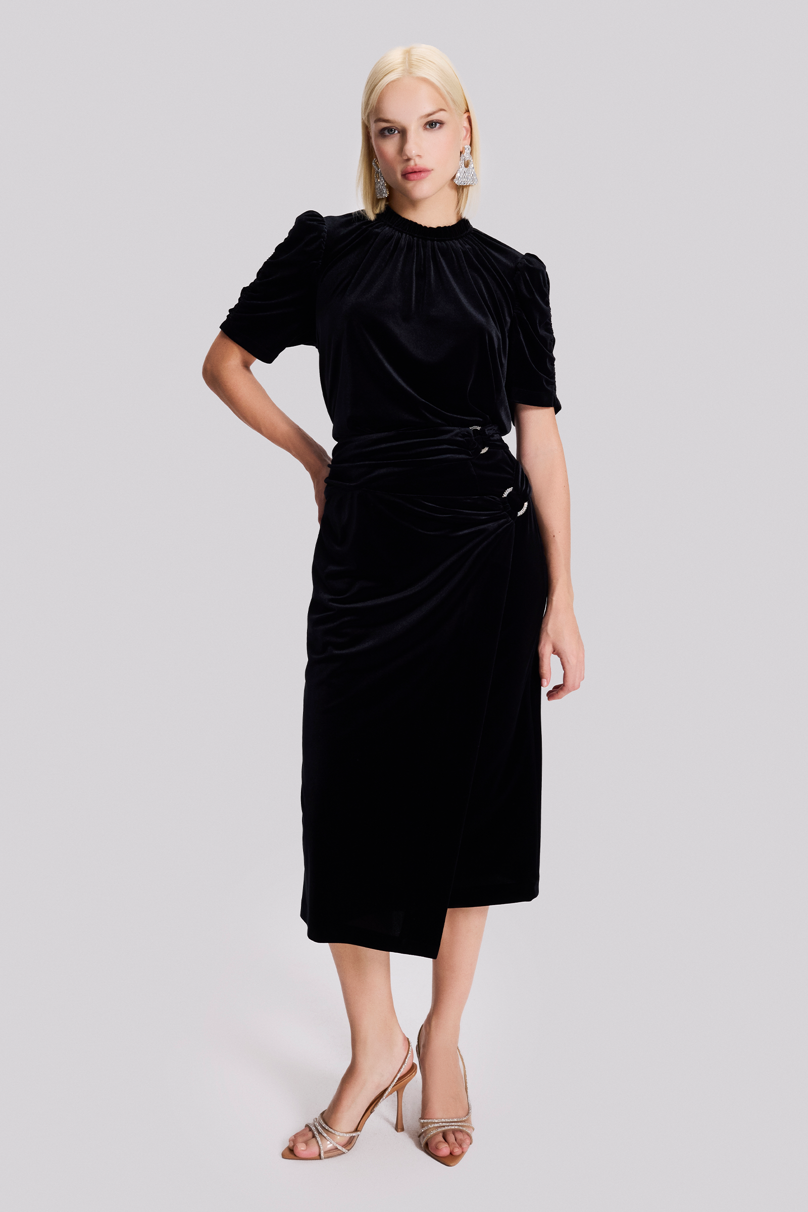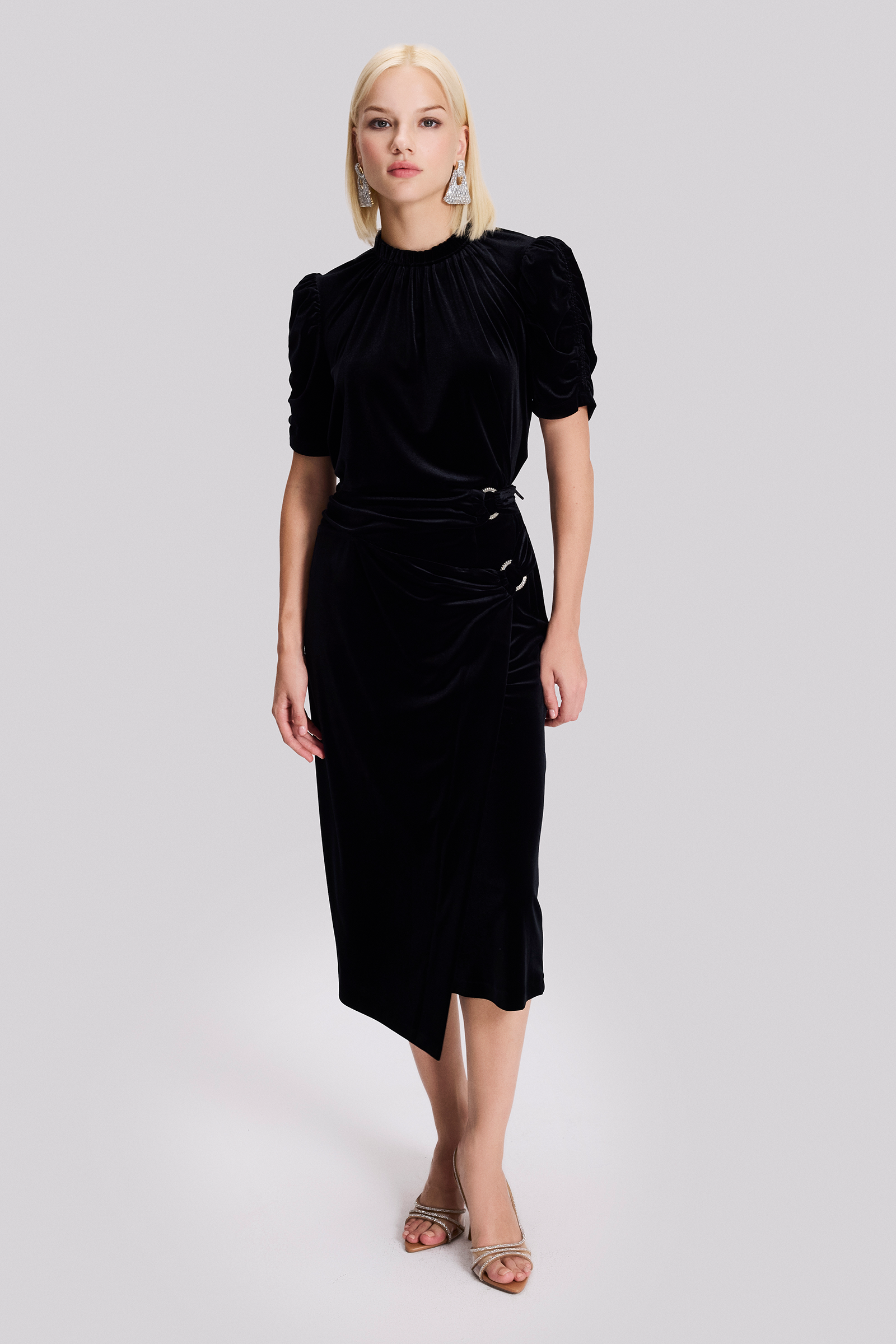 Aksesuar Detaylı Midi Boy Kadife Etek