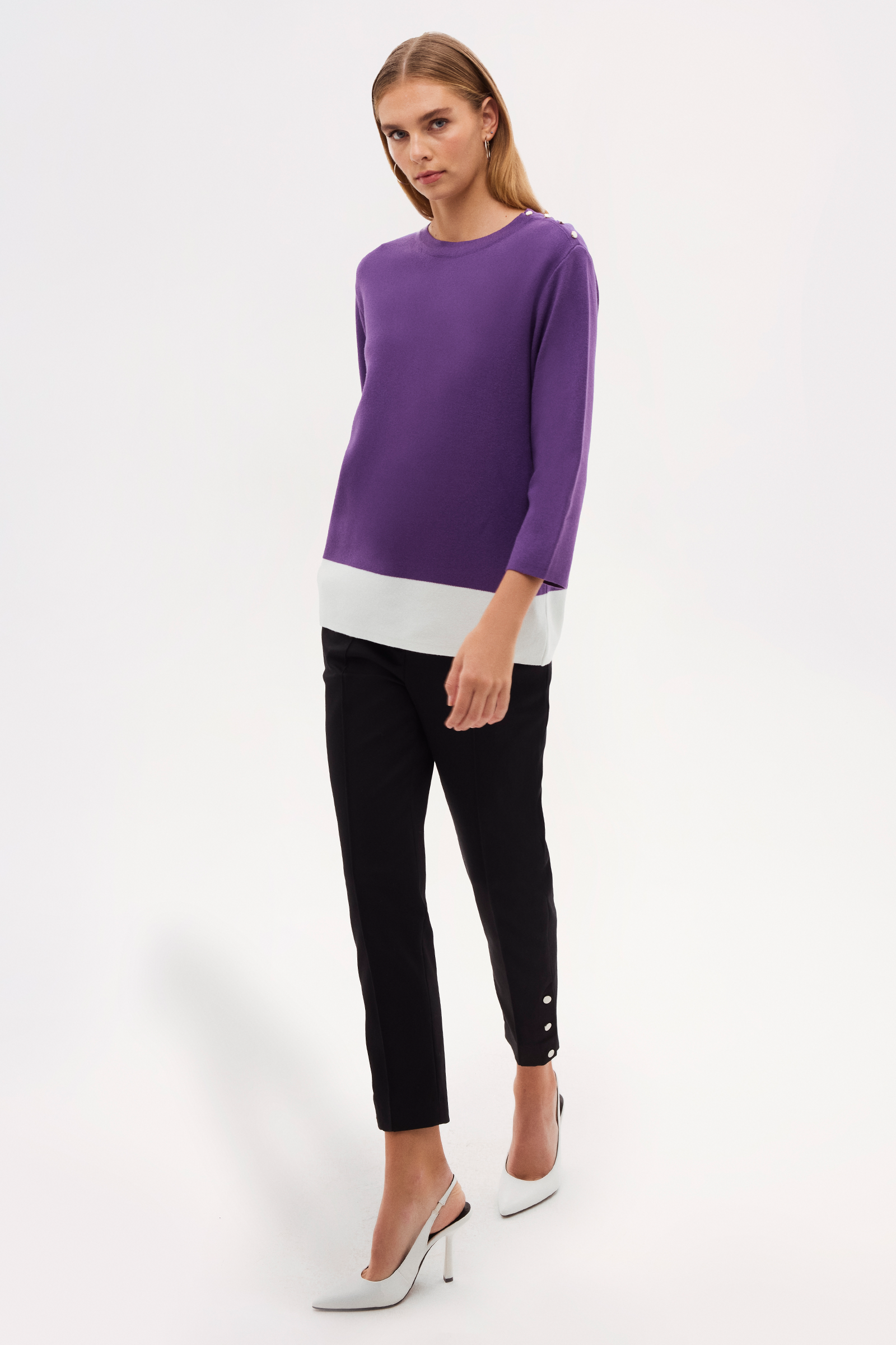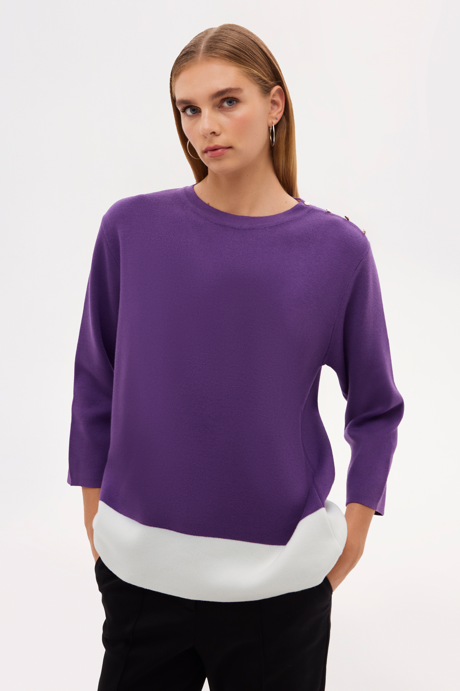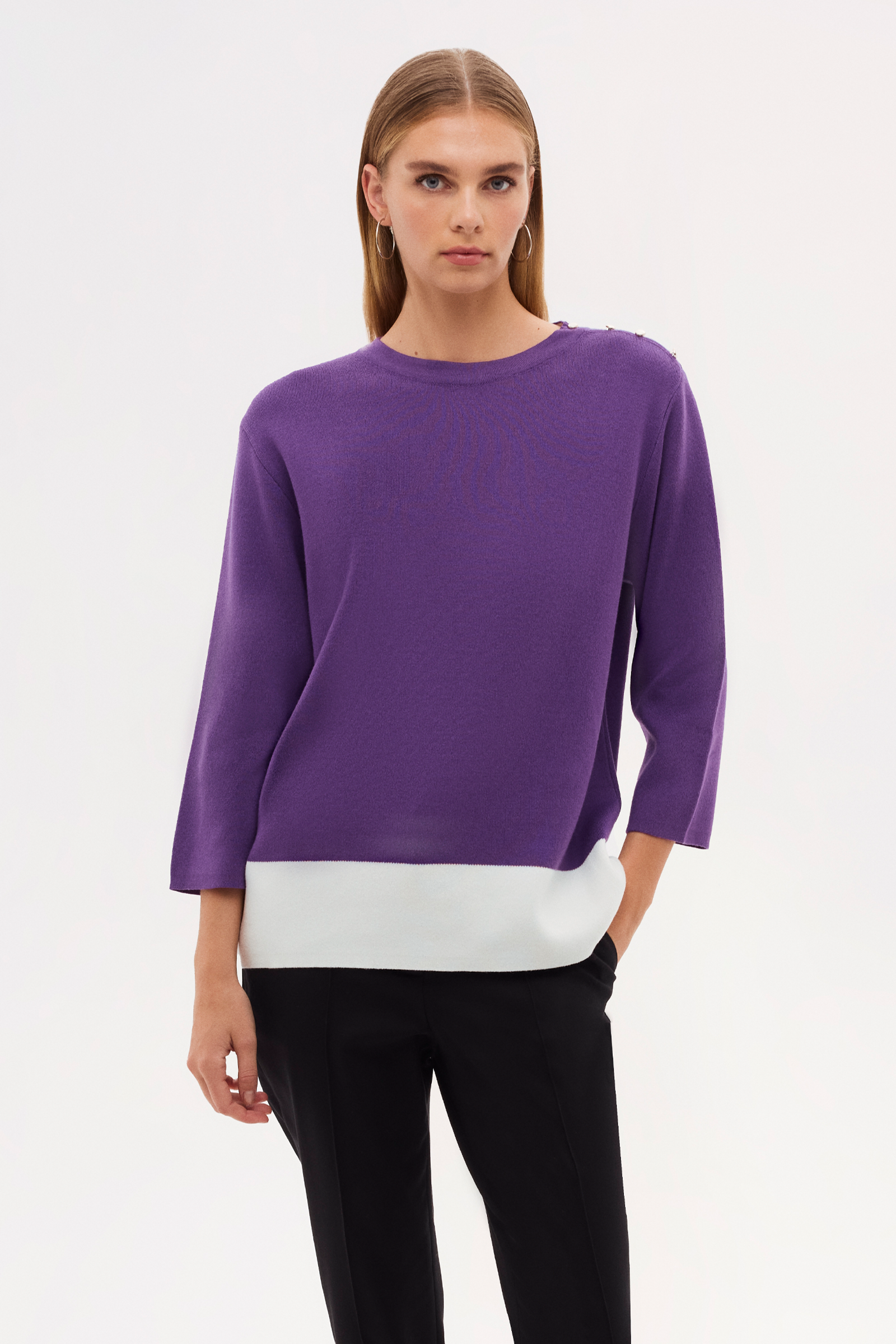Kontrast Detaylı Truvakar Kol Triko Bluz