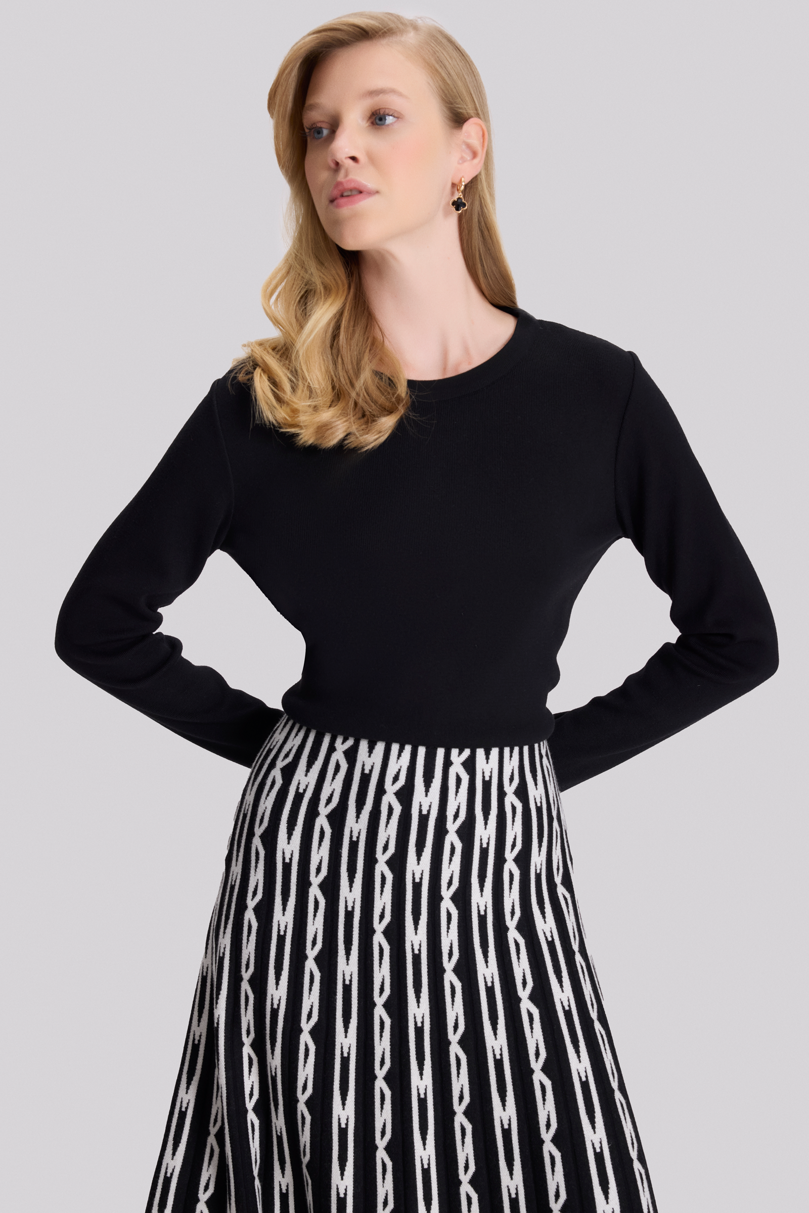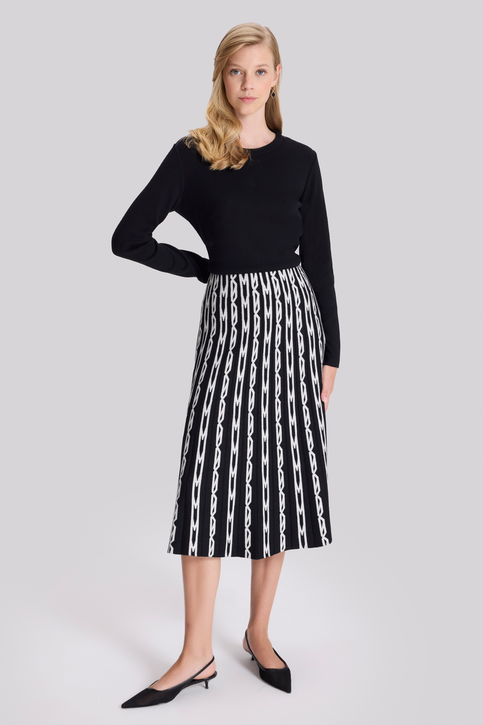 Monogram Desenli Triko Elbise