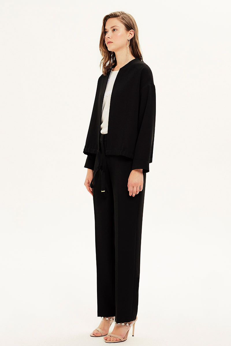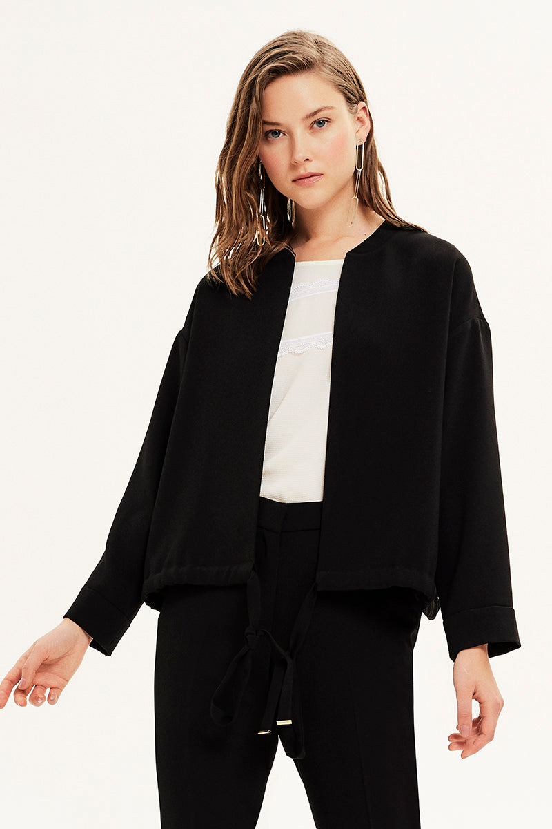 Bağcıklı Dökümlü Kısa Ceket