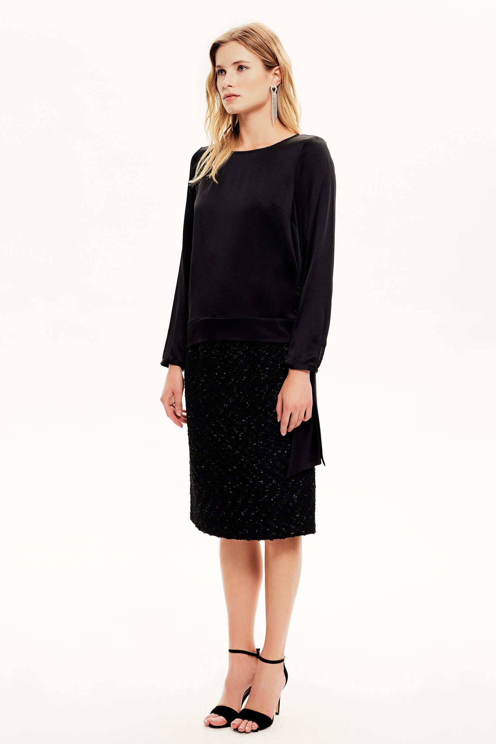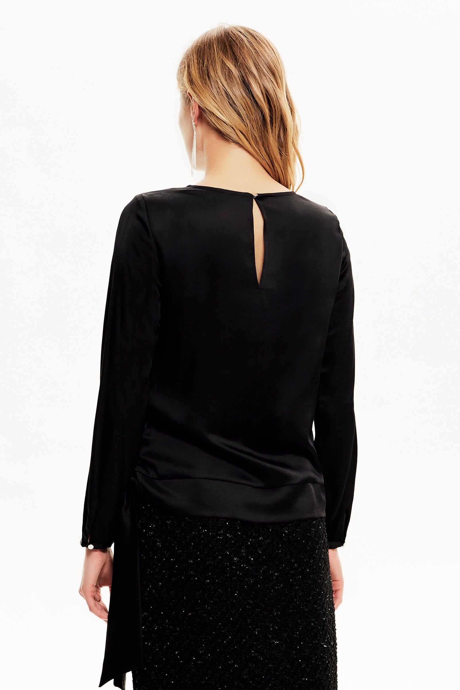 Bağlama Detaylı Saten Bluz