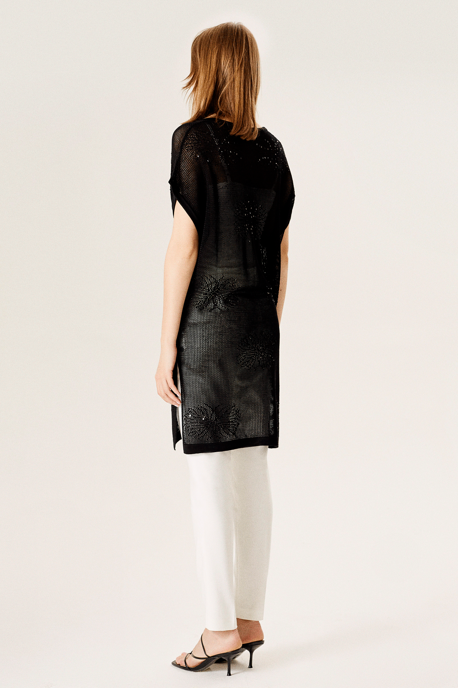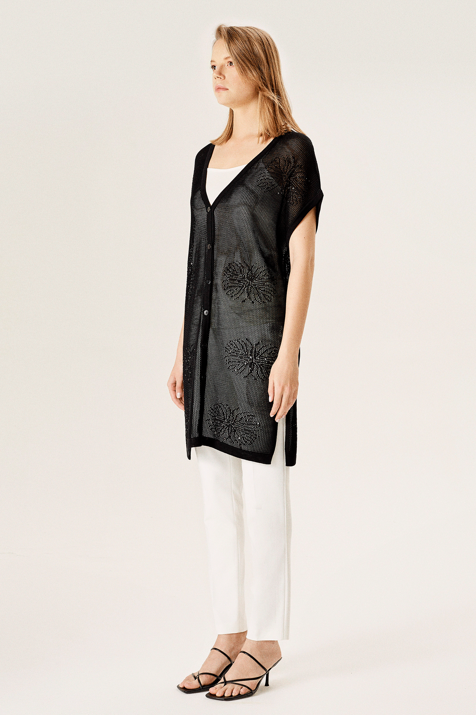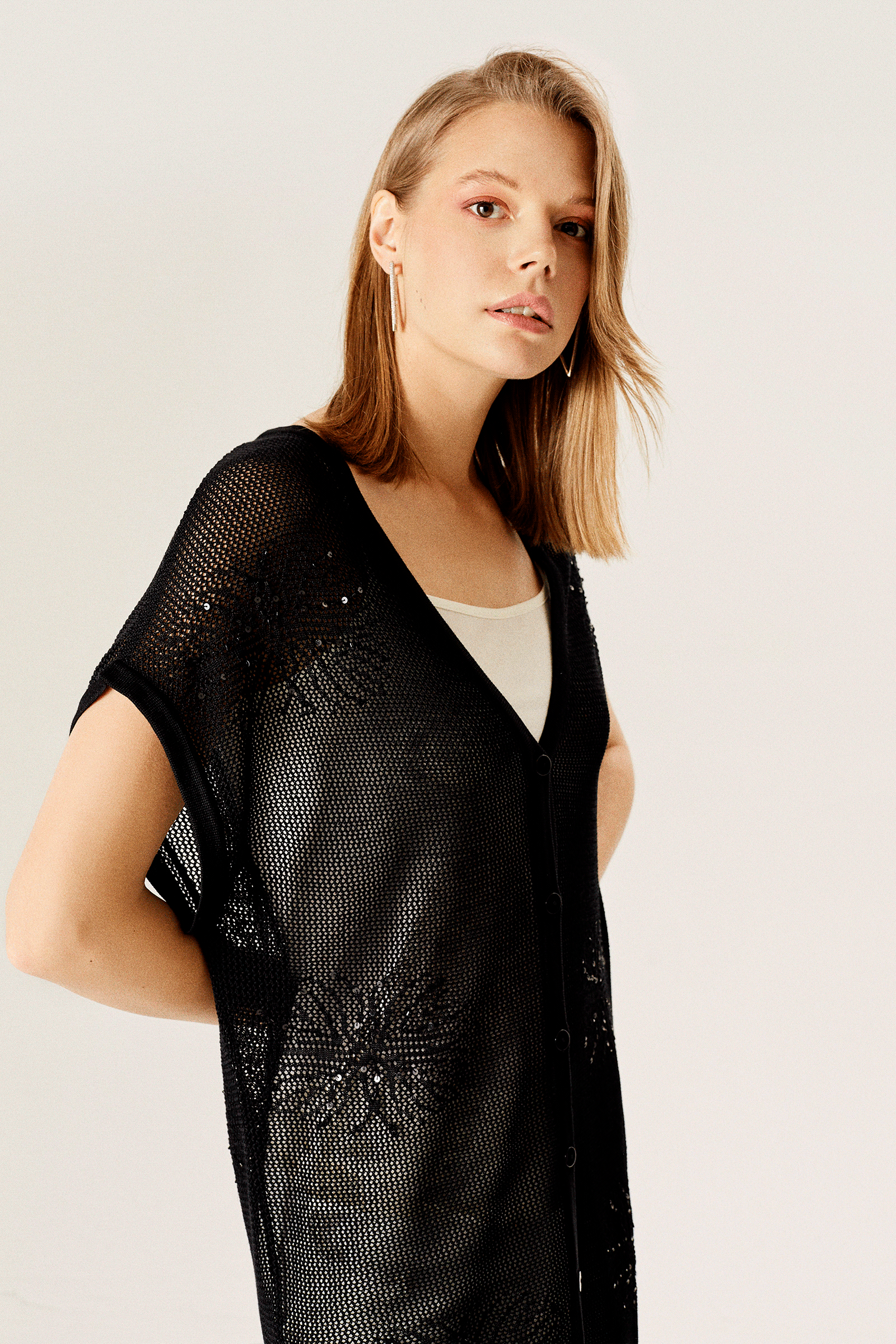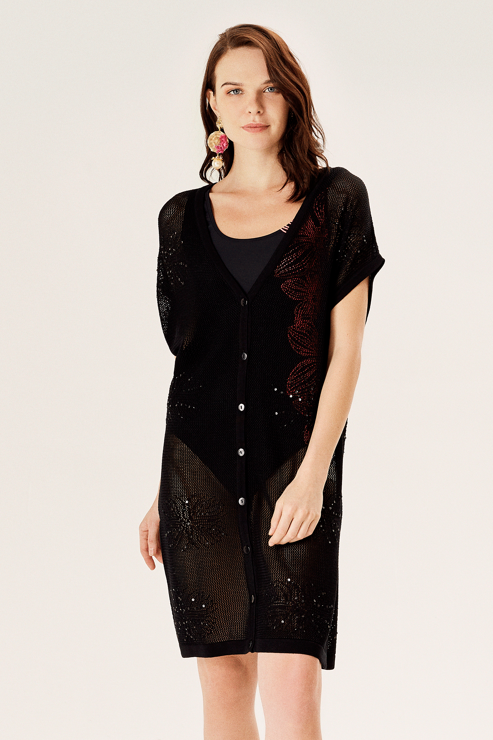 Pul İşlemeli File Triko Hırka