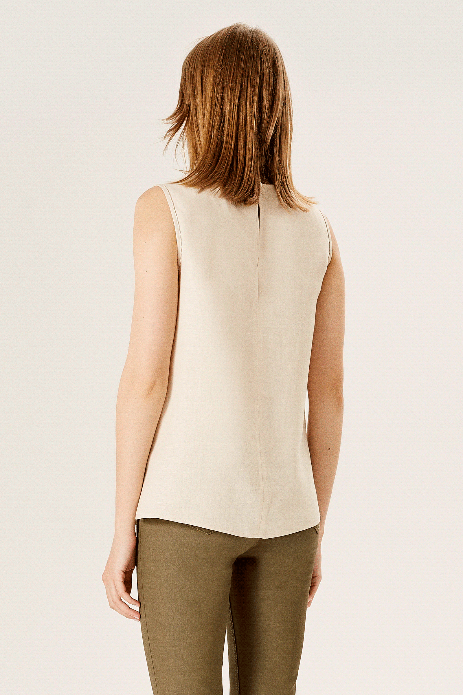 Yaka Detaylı Keten Bluz