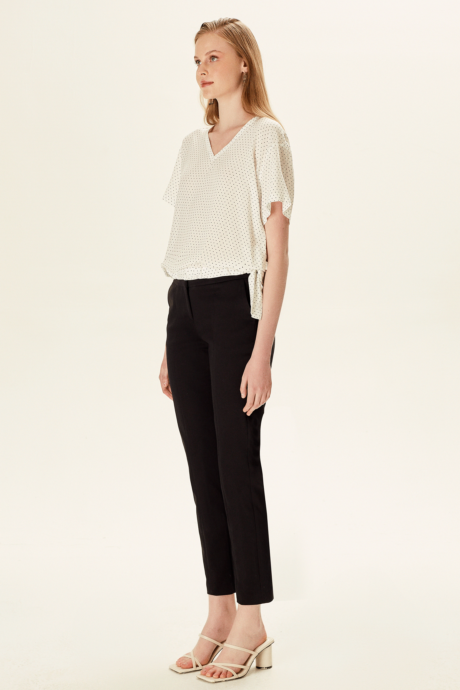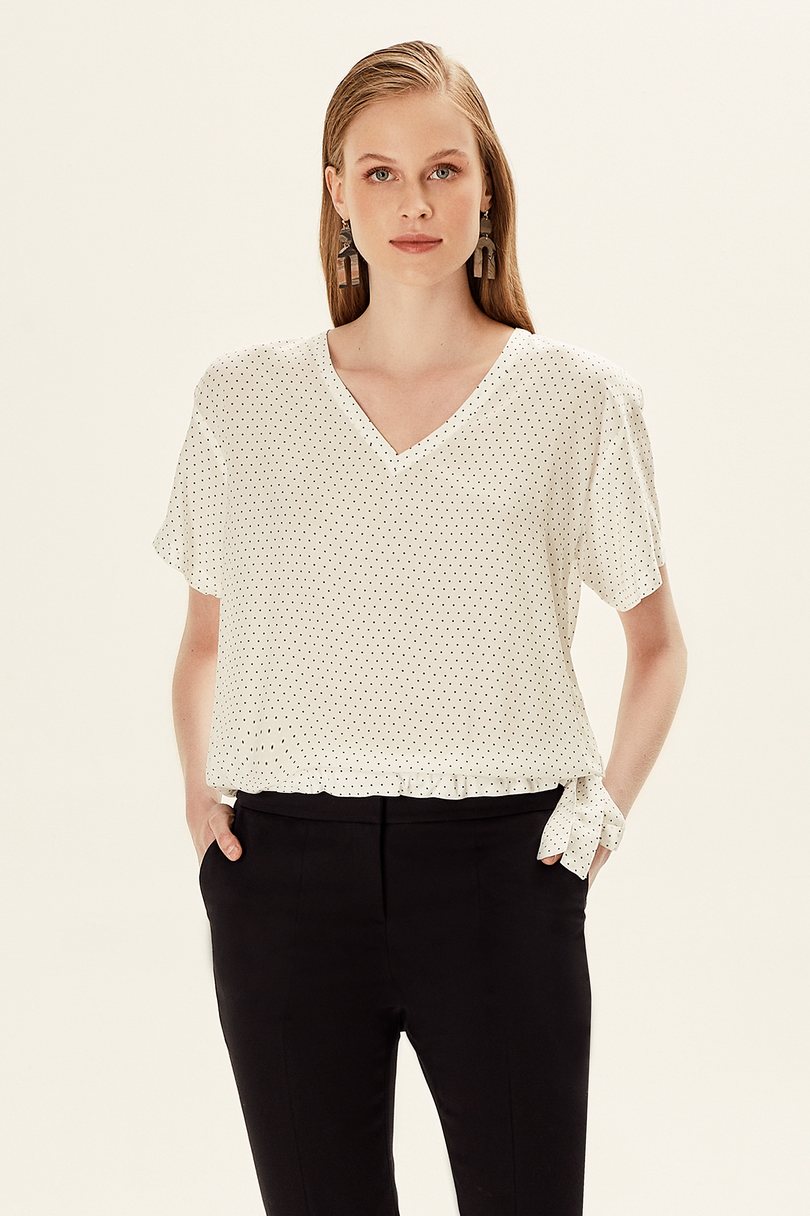 V Yakalı Yandan Bağlamalı Bluz