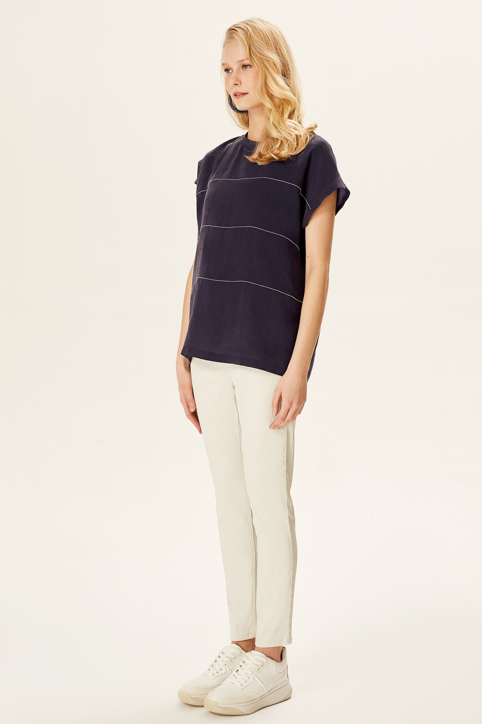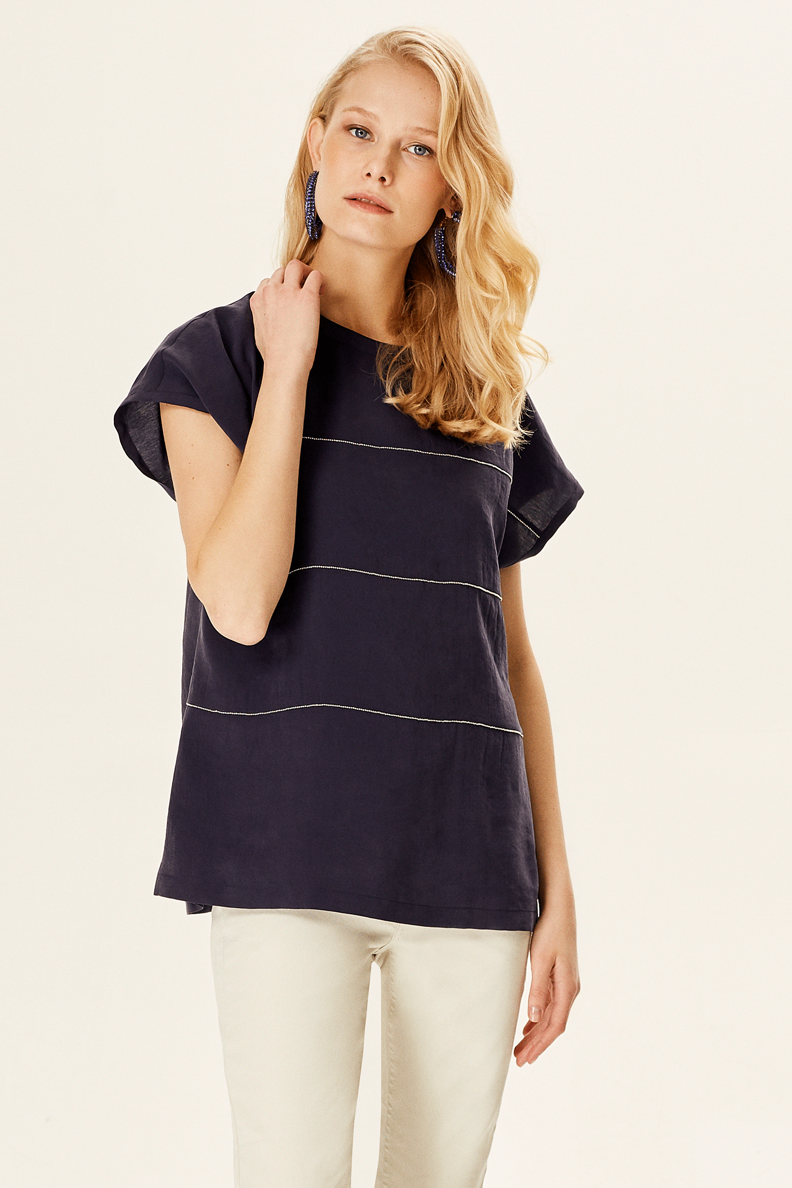 Zincir Aksesuarlı Düşük Kollu Bluz