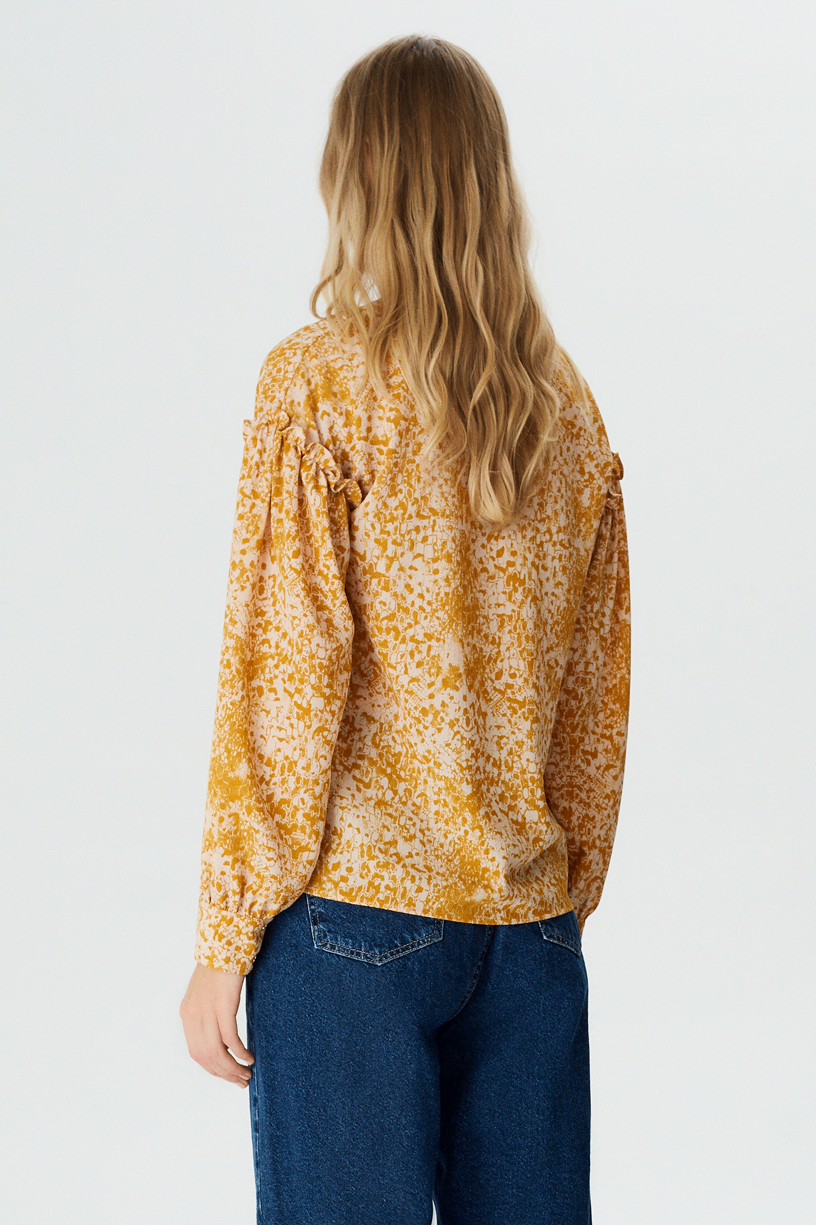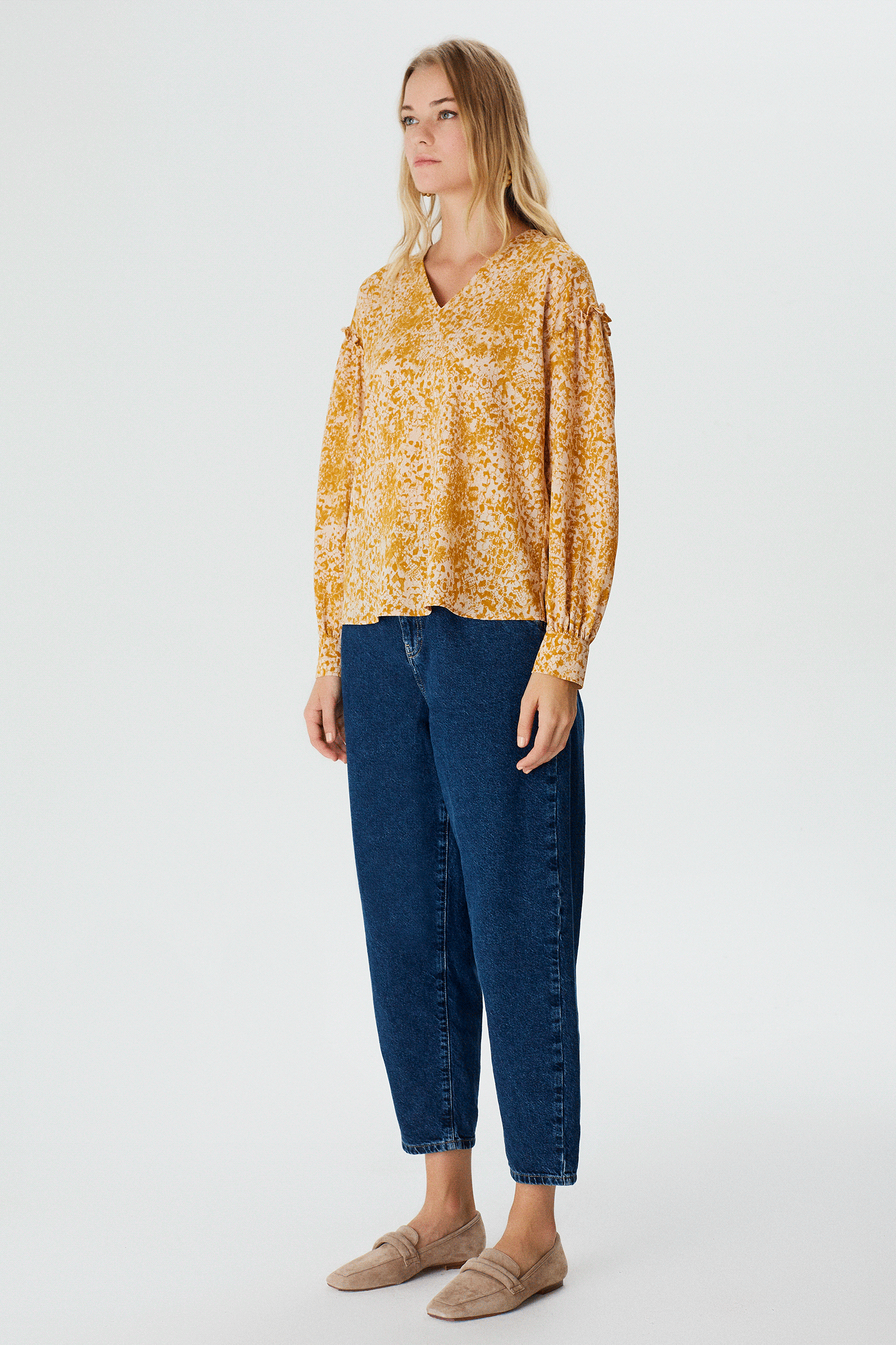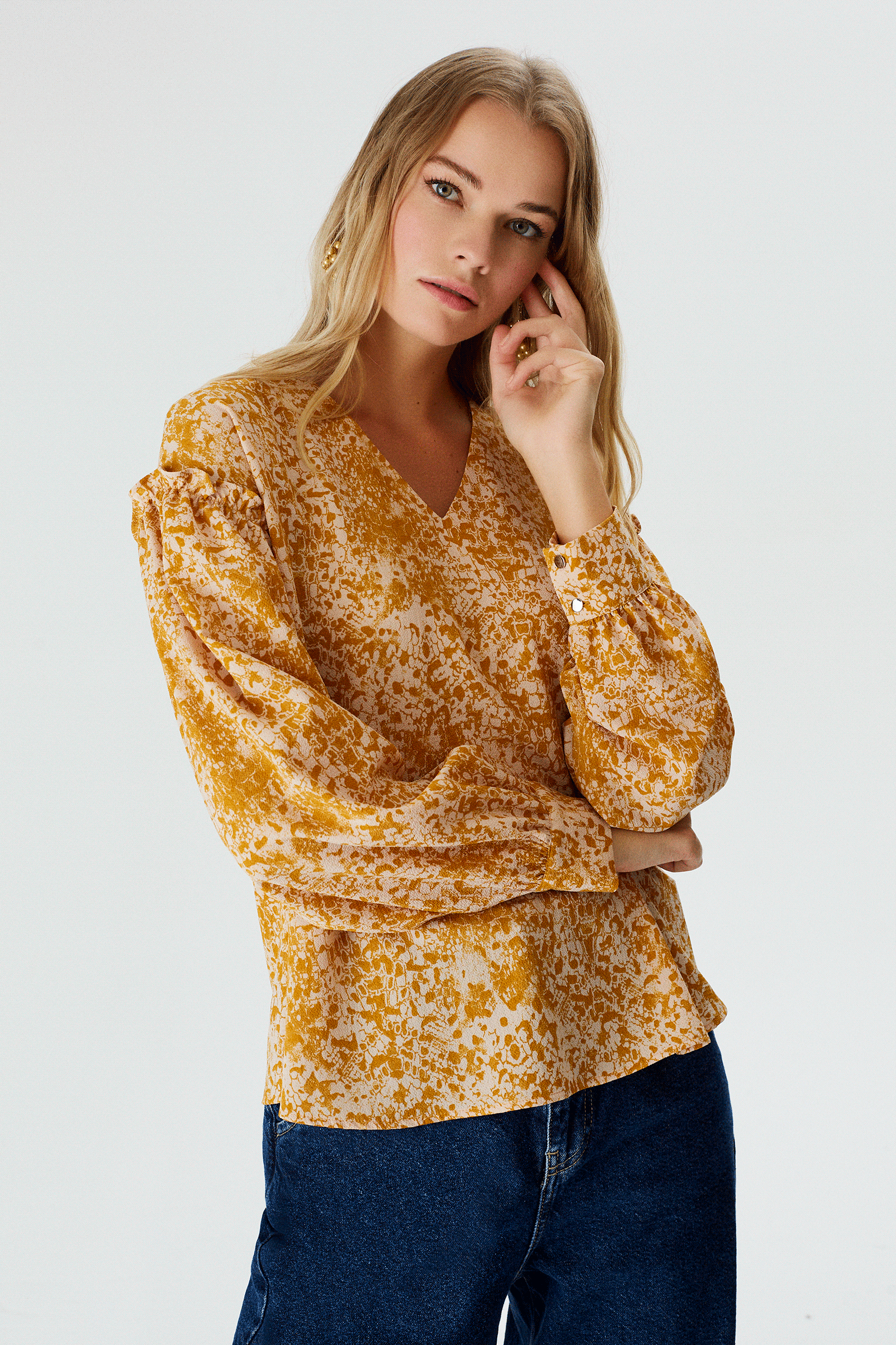 Fırfır Detaylı V Yaka Bluz