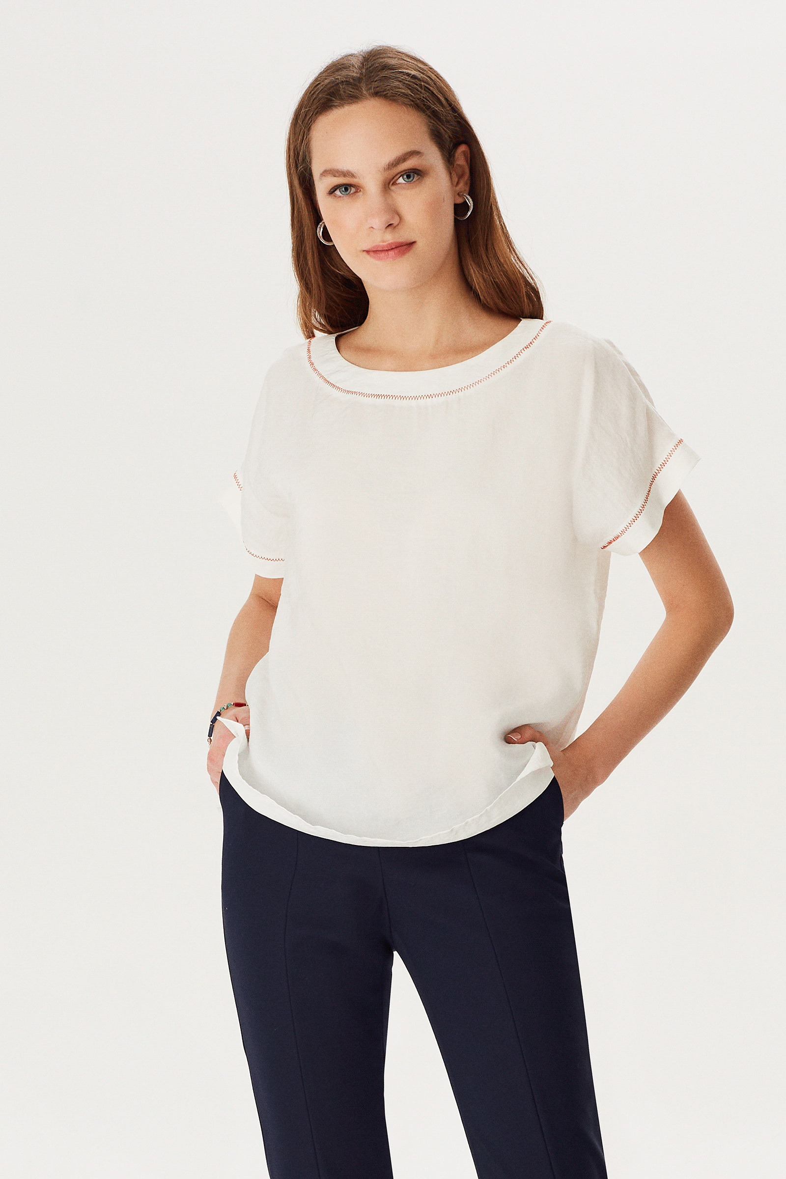 Düşük Kollu Yakası Dikiş Detaylı Bluz