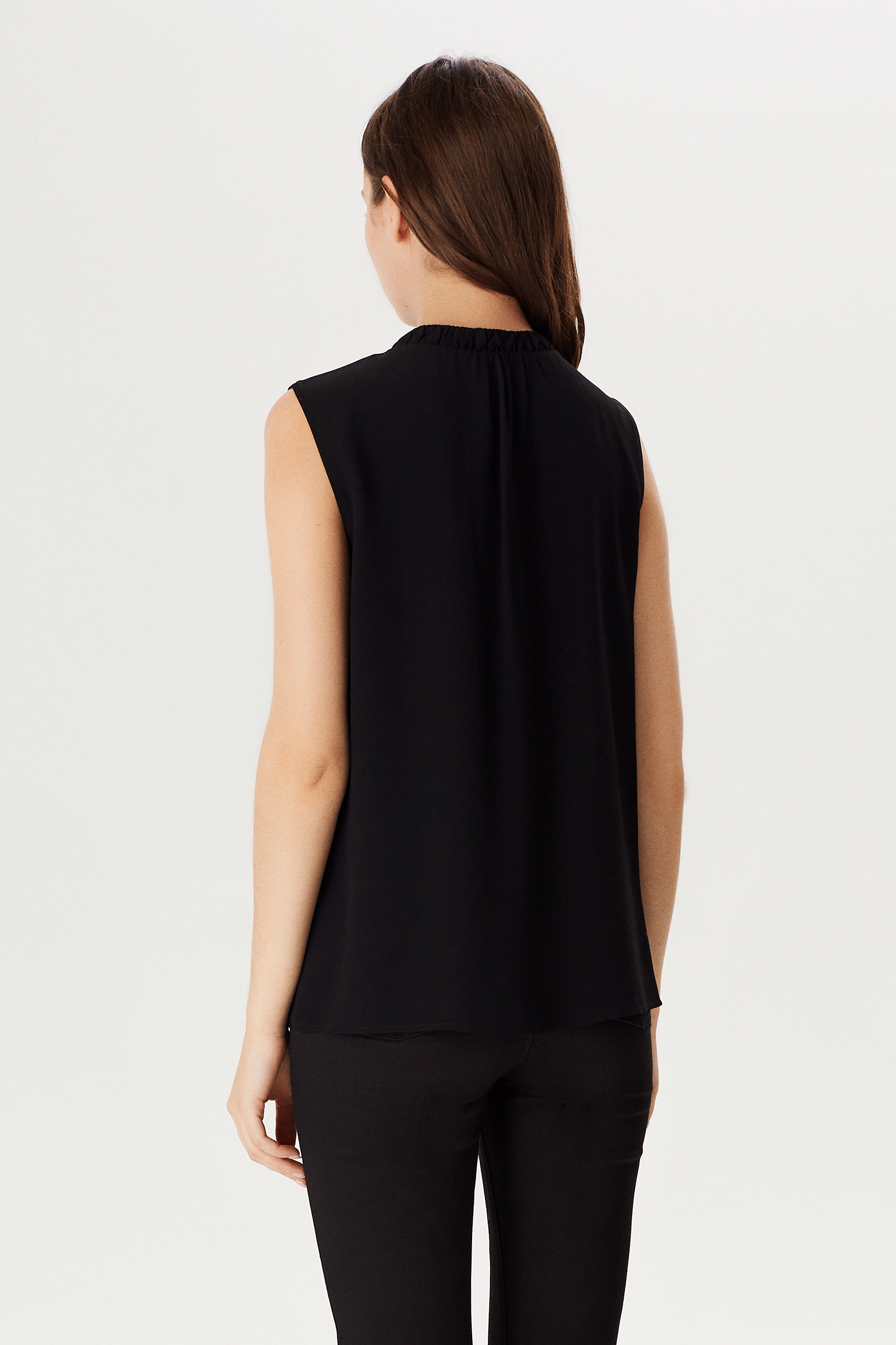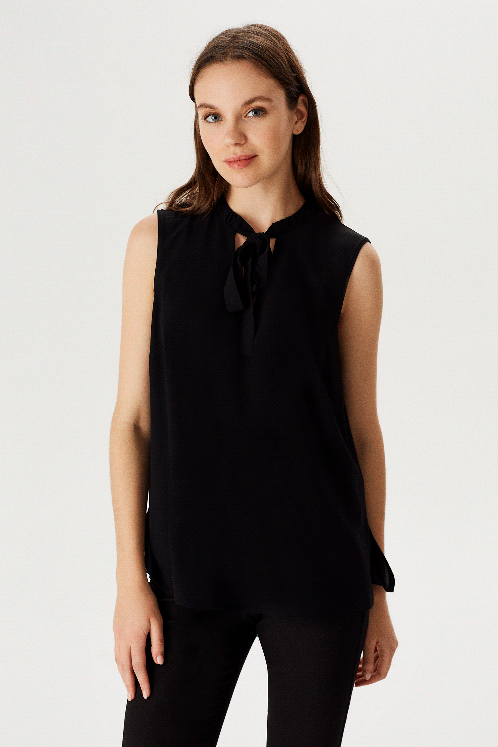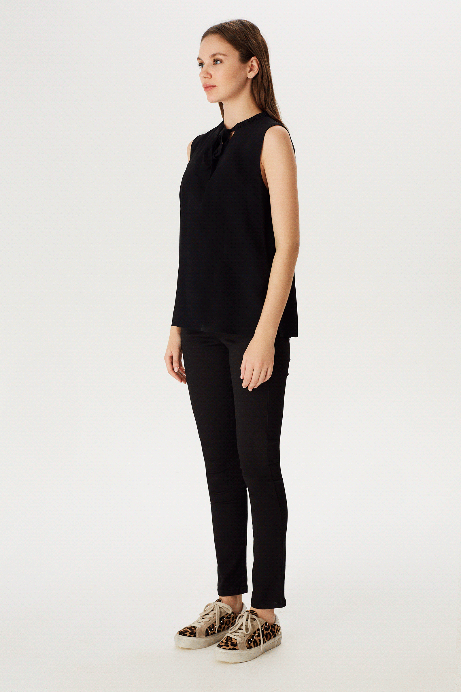 Yakası Bağlama Detaylı Kolsuz Bluz
