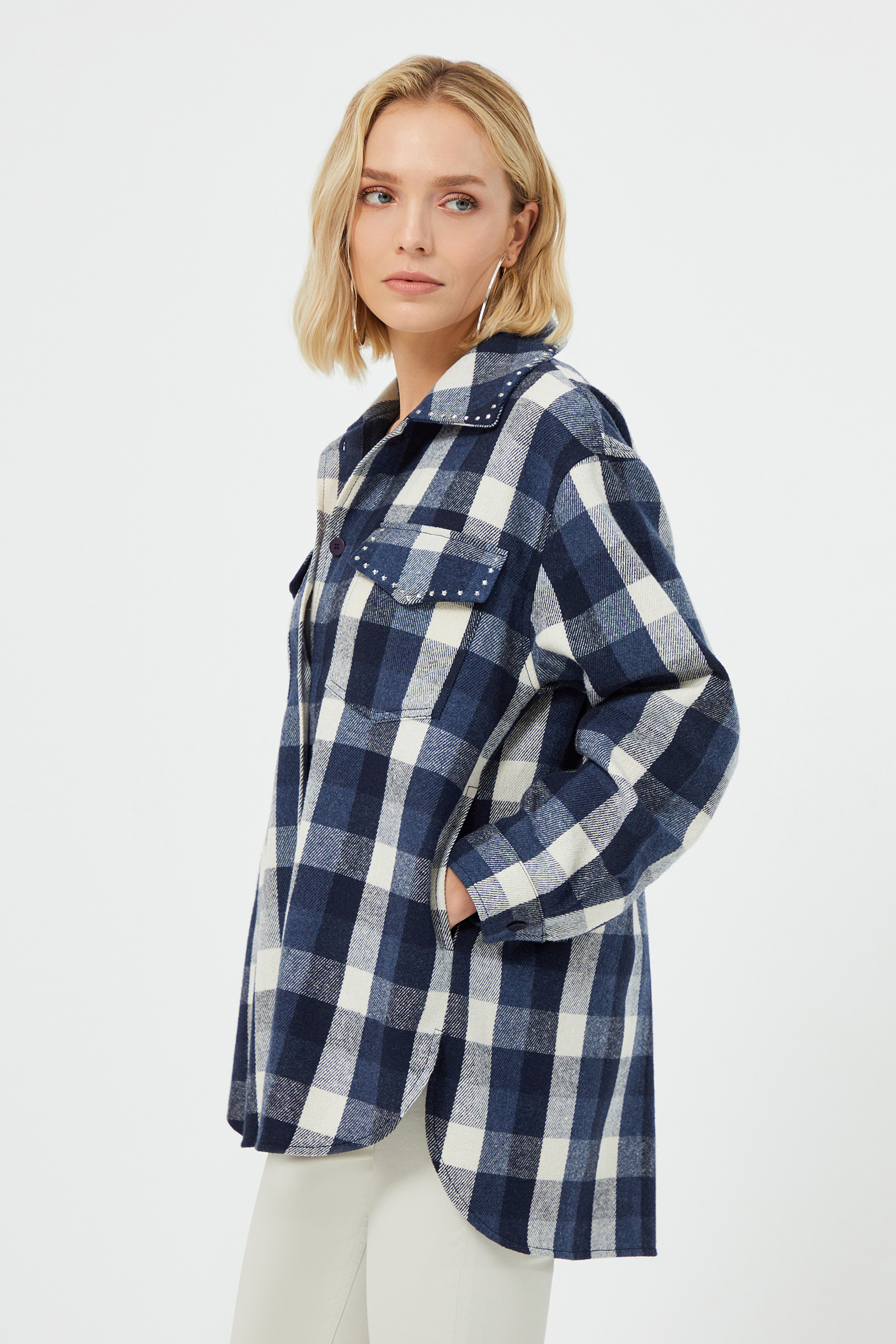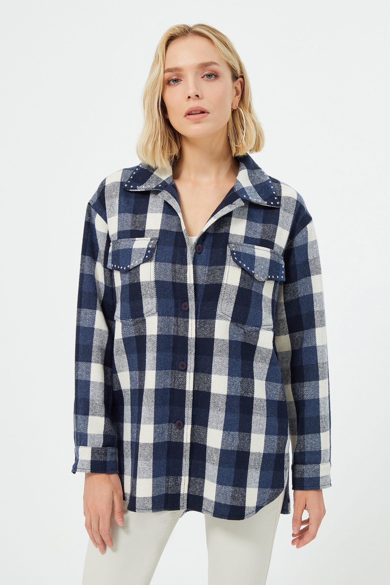 Zımba Detaylı Ekose Gömlek
