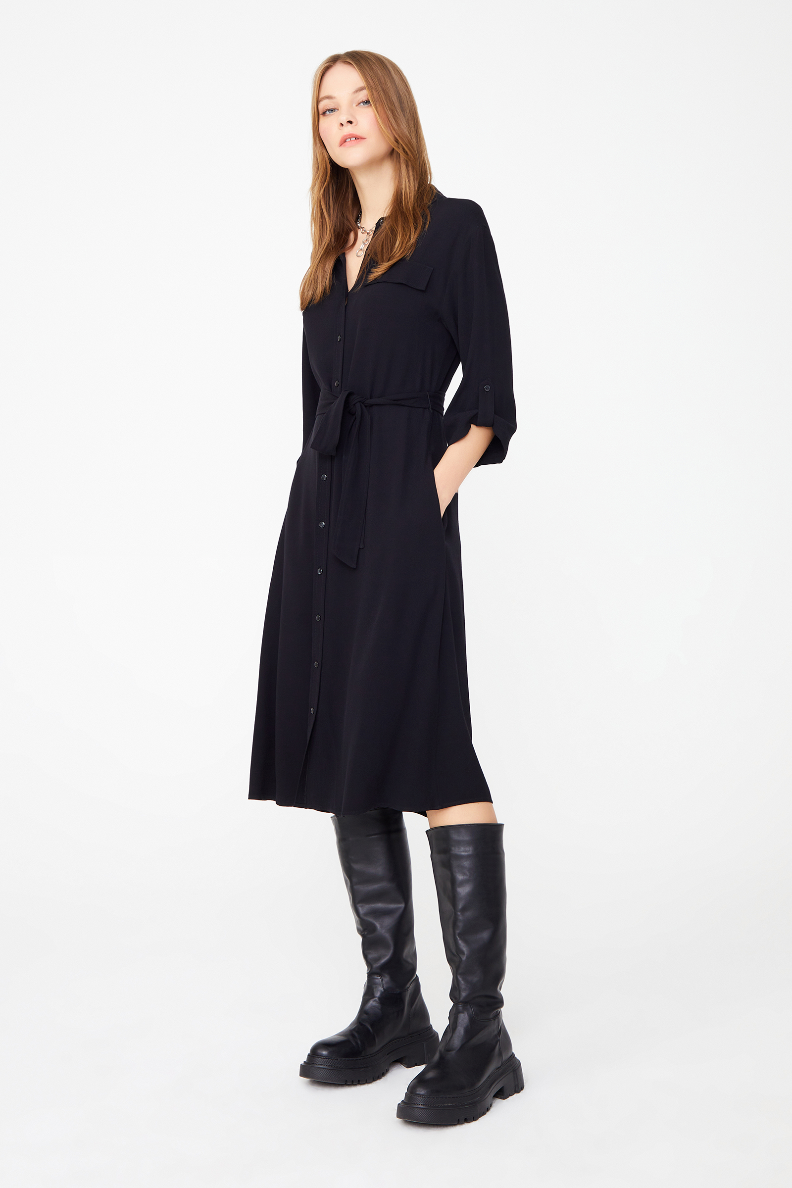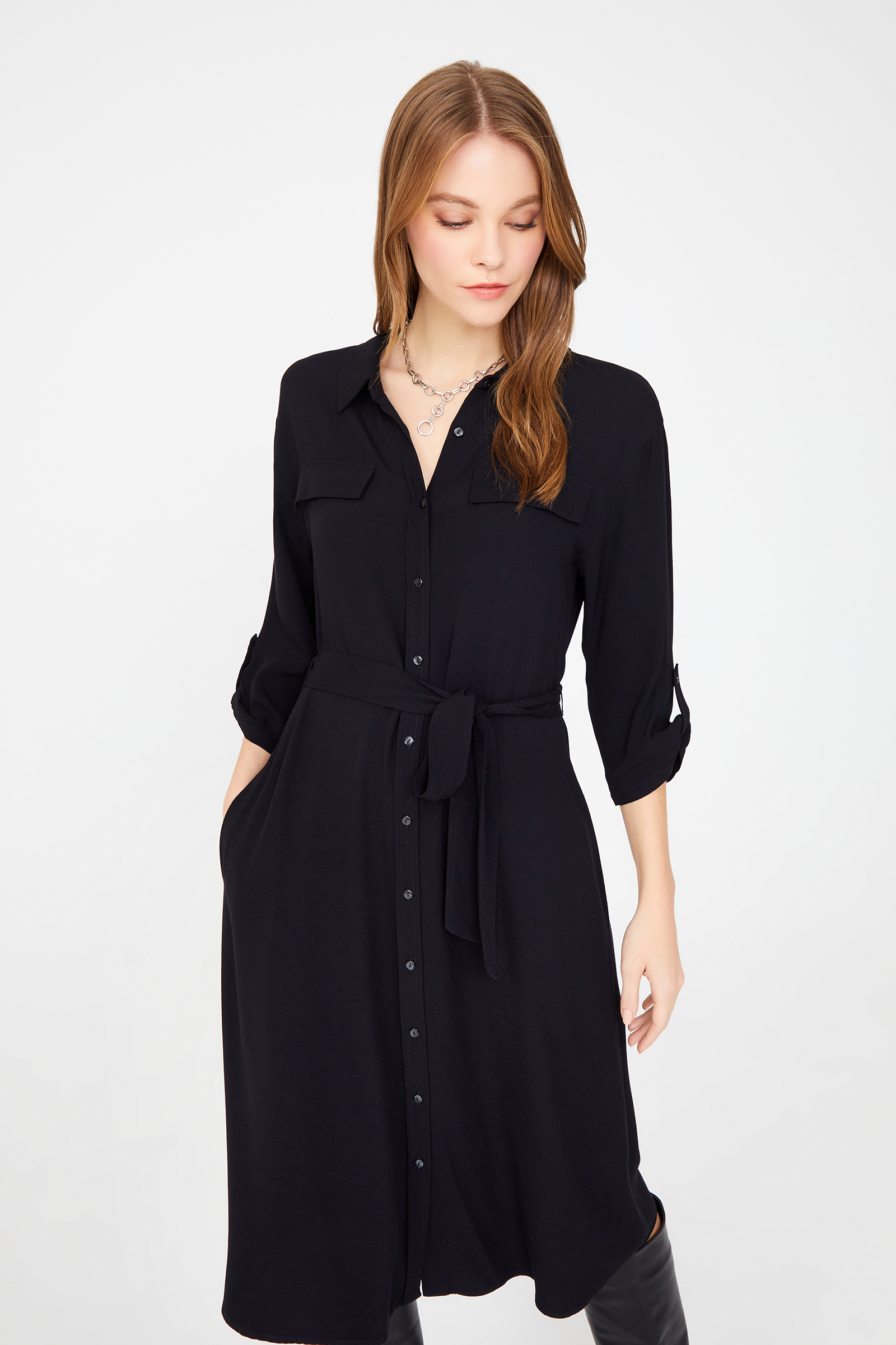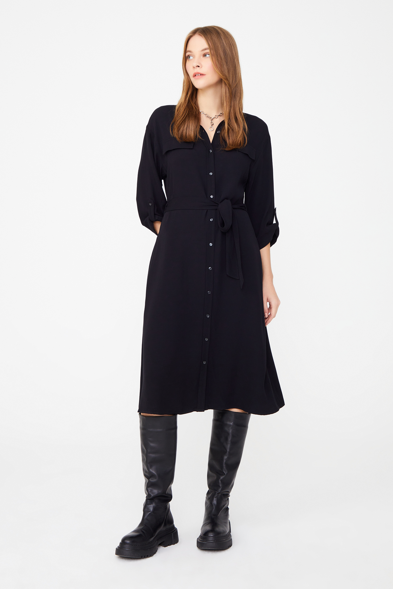 Apoletli Diz Boy Gömlek Elbise