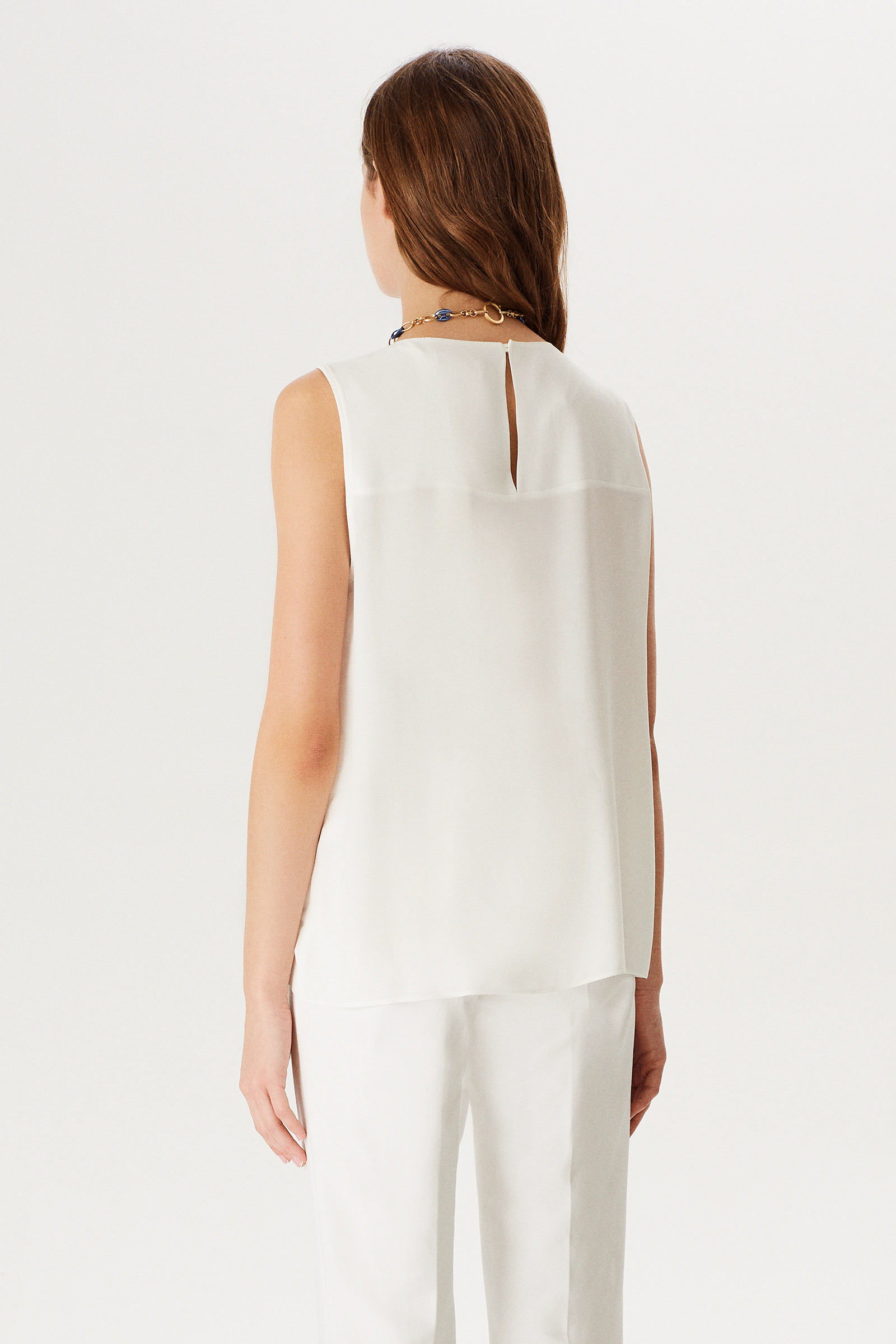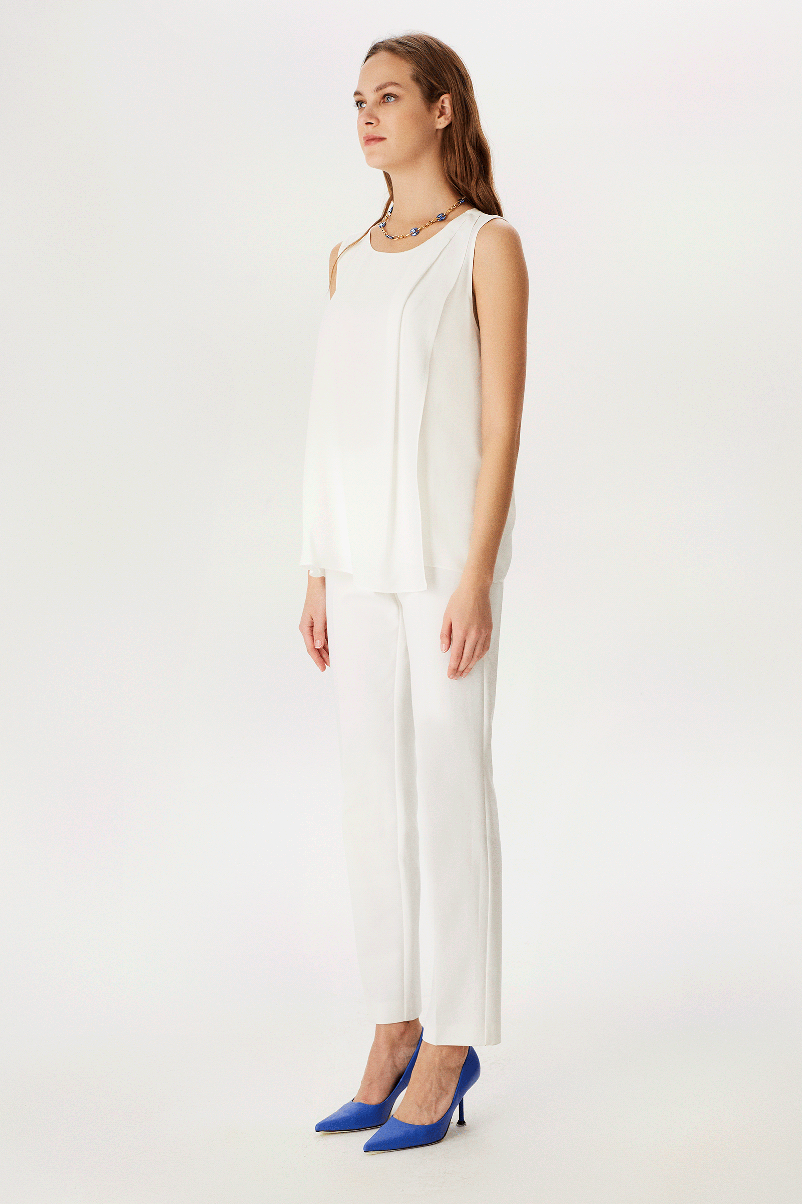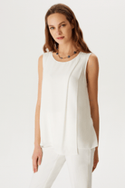 Asimetrik Pile Detaylı Kolsuz Bluz