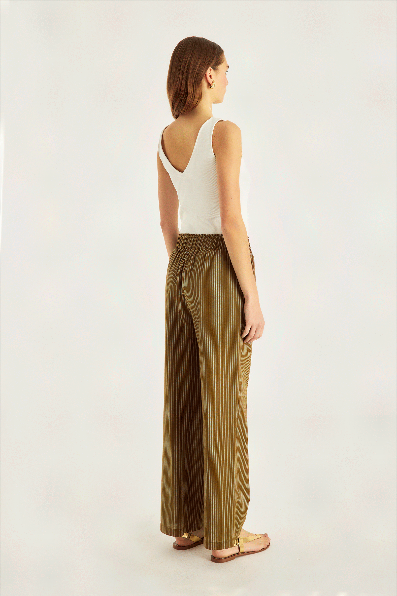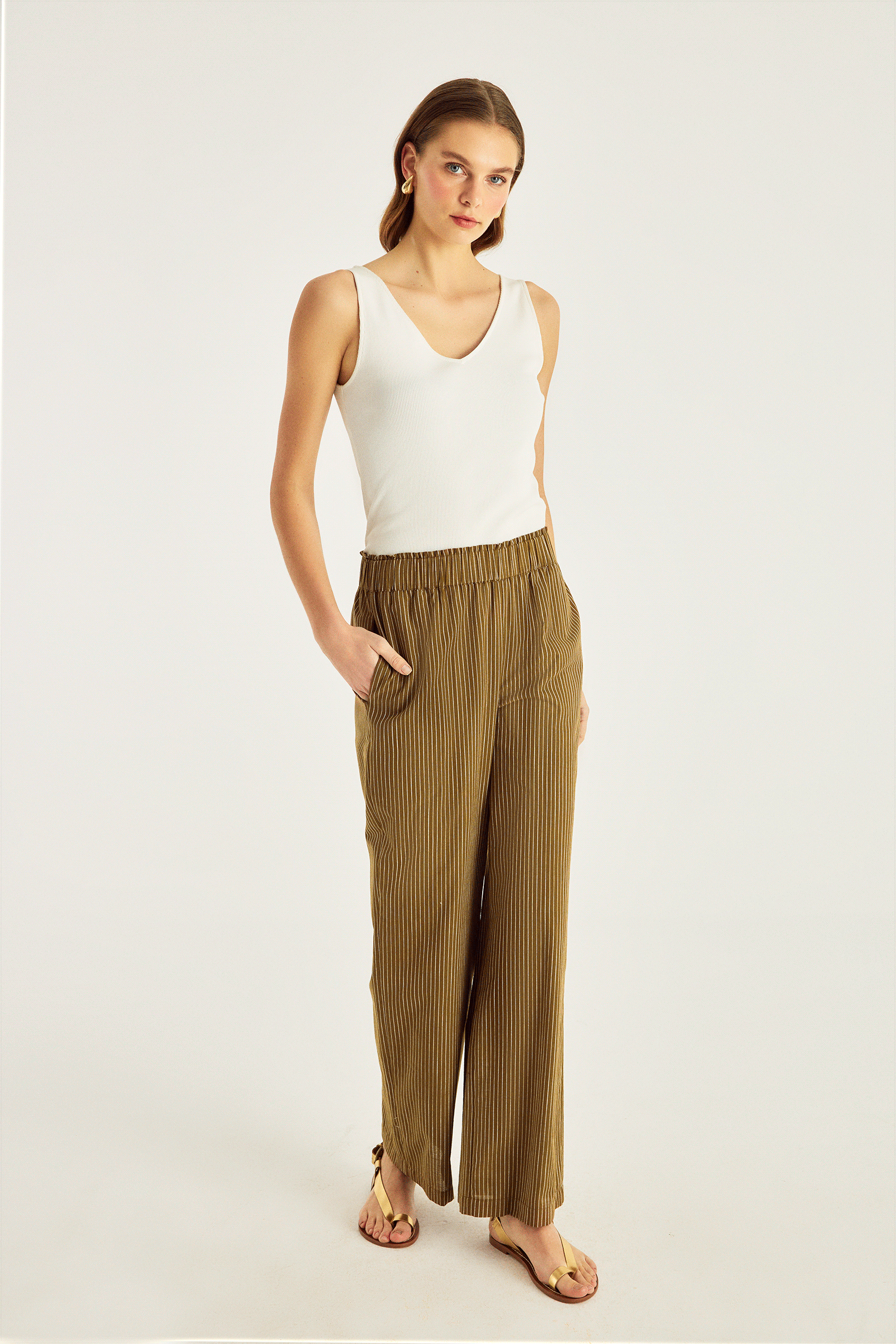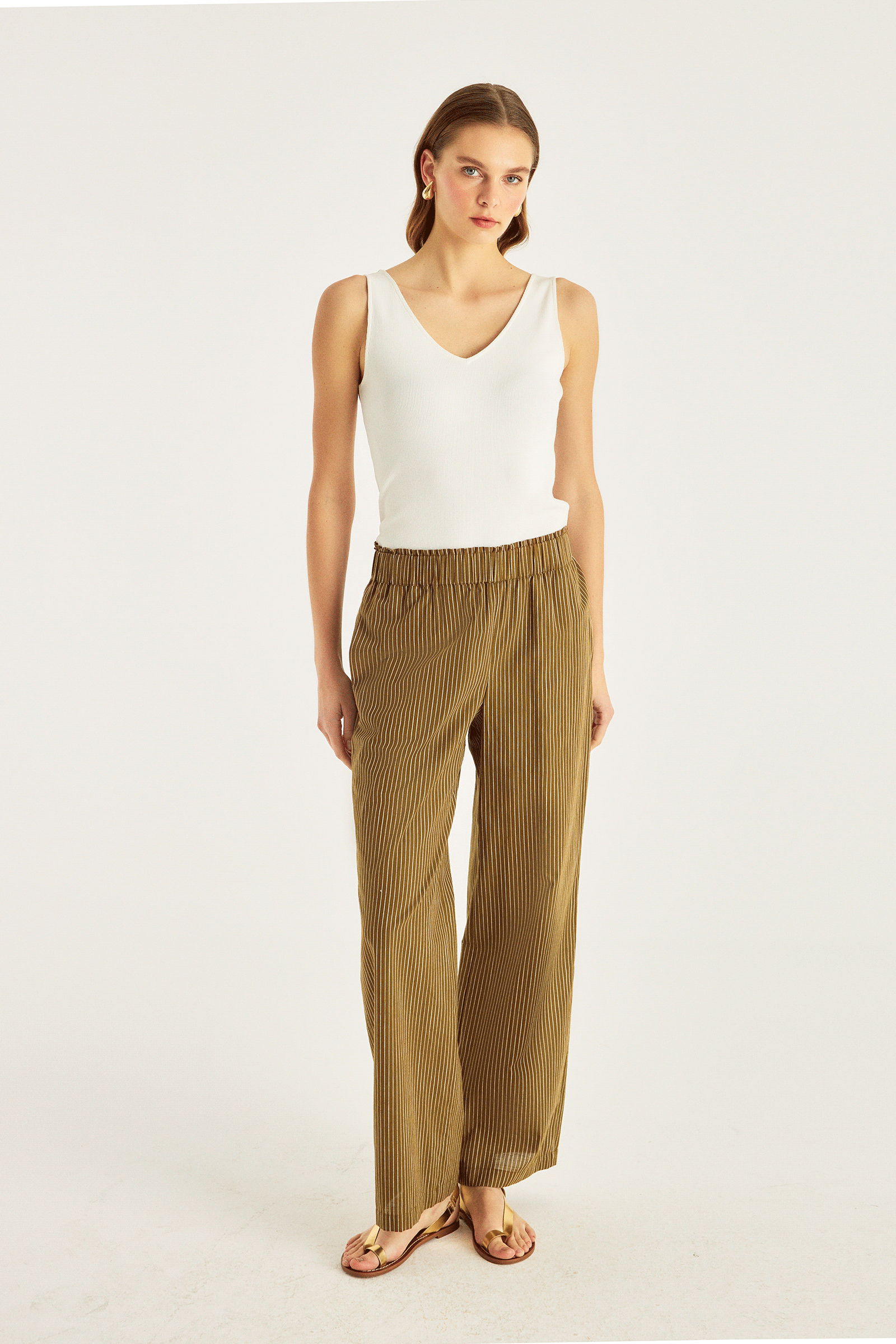 Beli Lastikli Çizgili Pantolon