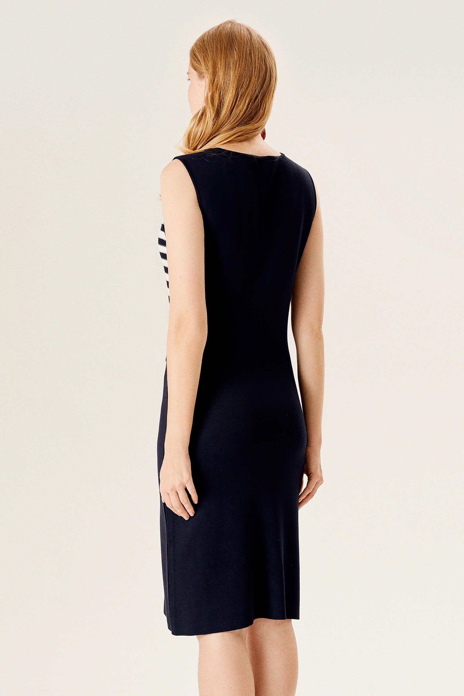 Çizgili Kolsuz Triko Elbise