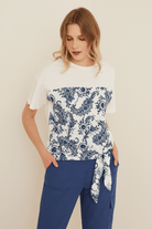Dokuma Karışımlı Bağcıklı Penye Bluz