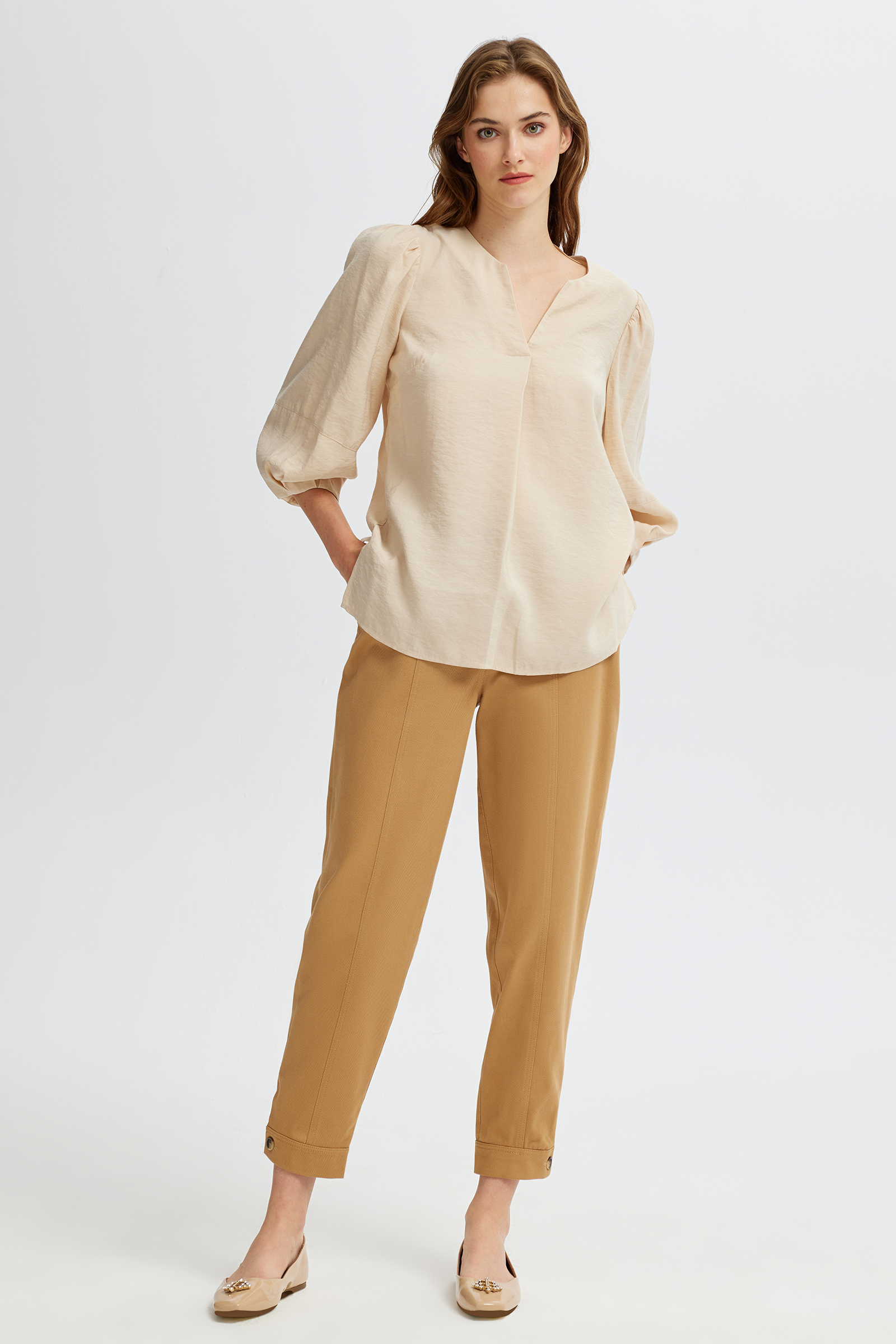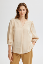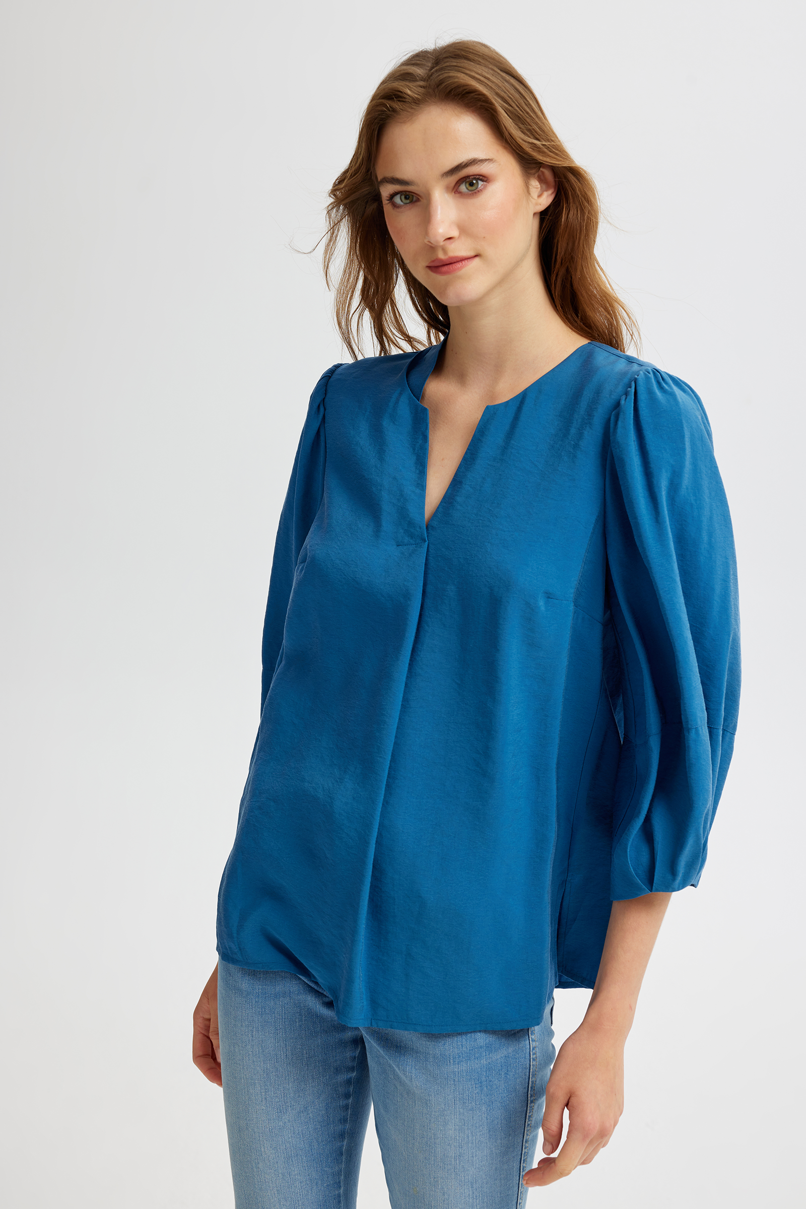 Geniş Kollu V Yaka Bluz