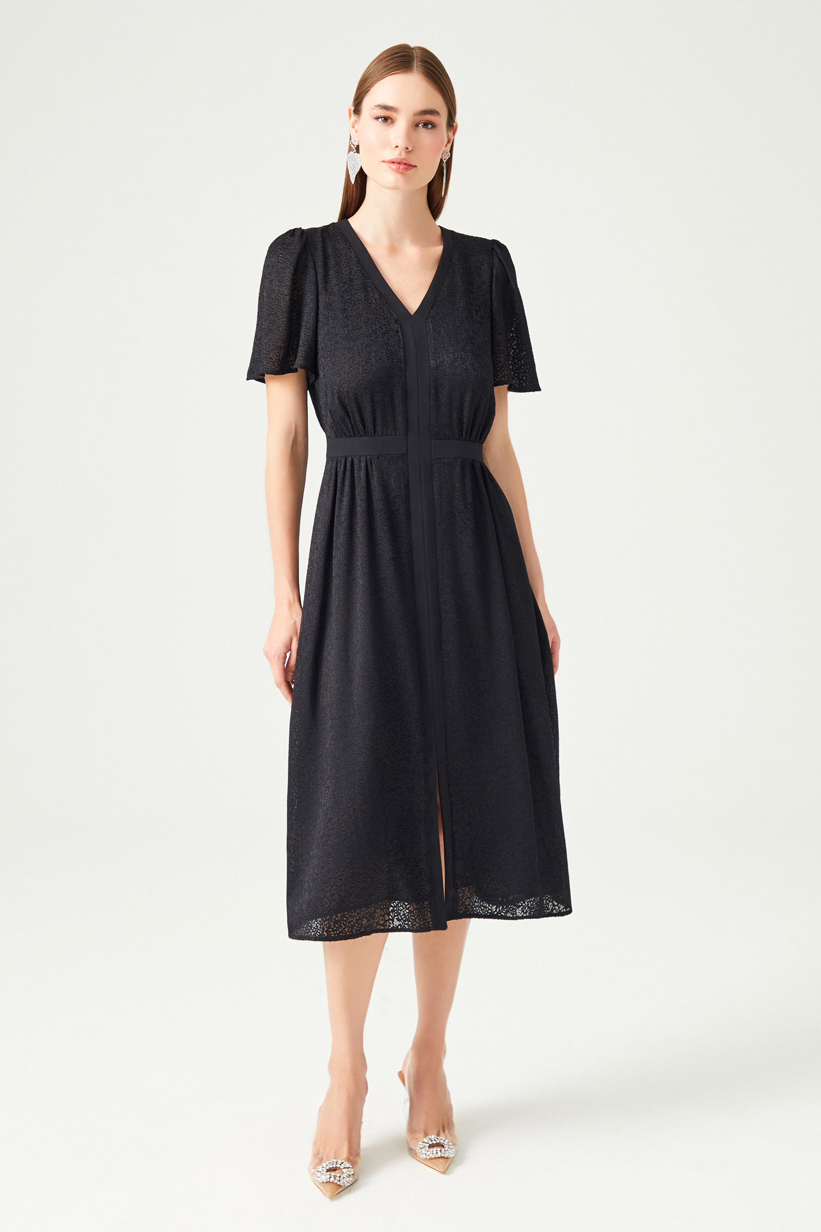 Jakarlı Midi Boy Elbise