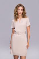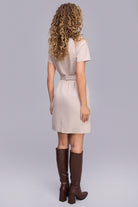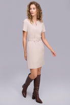 Kemerli Dizboy Bej Çizgili Elbise