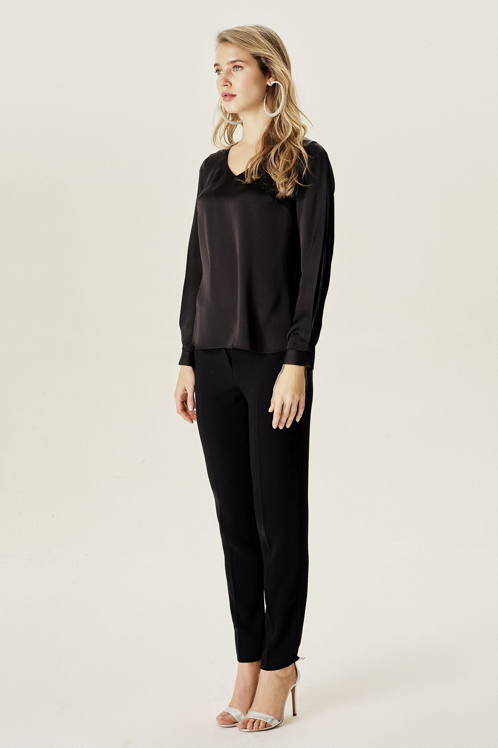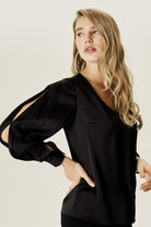 Kolu Yırtmaçlı Dökümlü Bluz