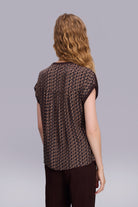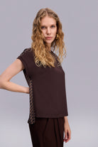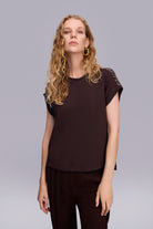 Kumaş Karışımlı Düşük Kollu Lacivert Bluz