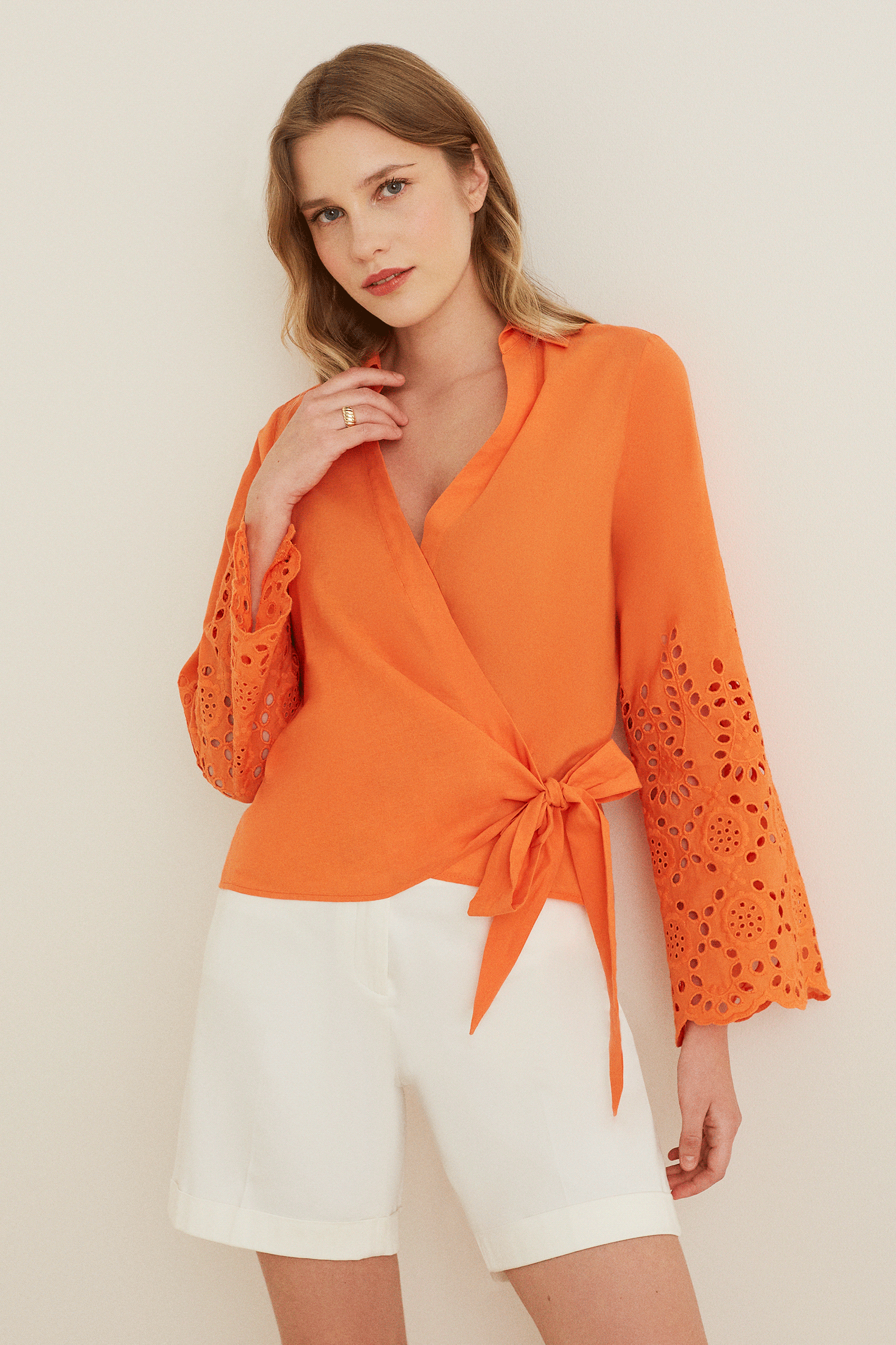 Nakış Detaylı Kruvaze Bağlamalı Bluz