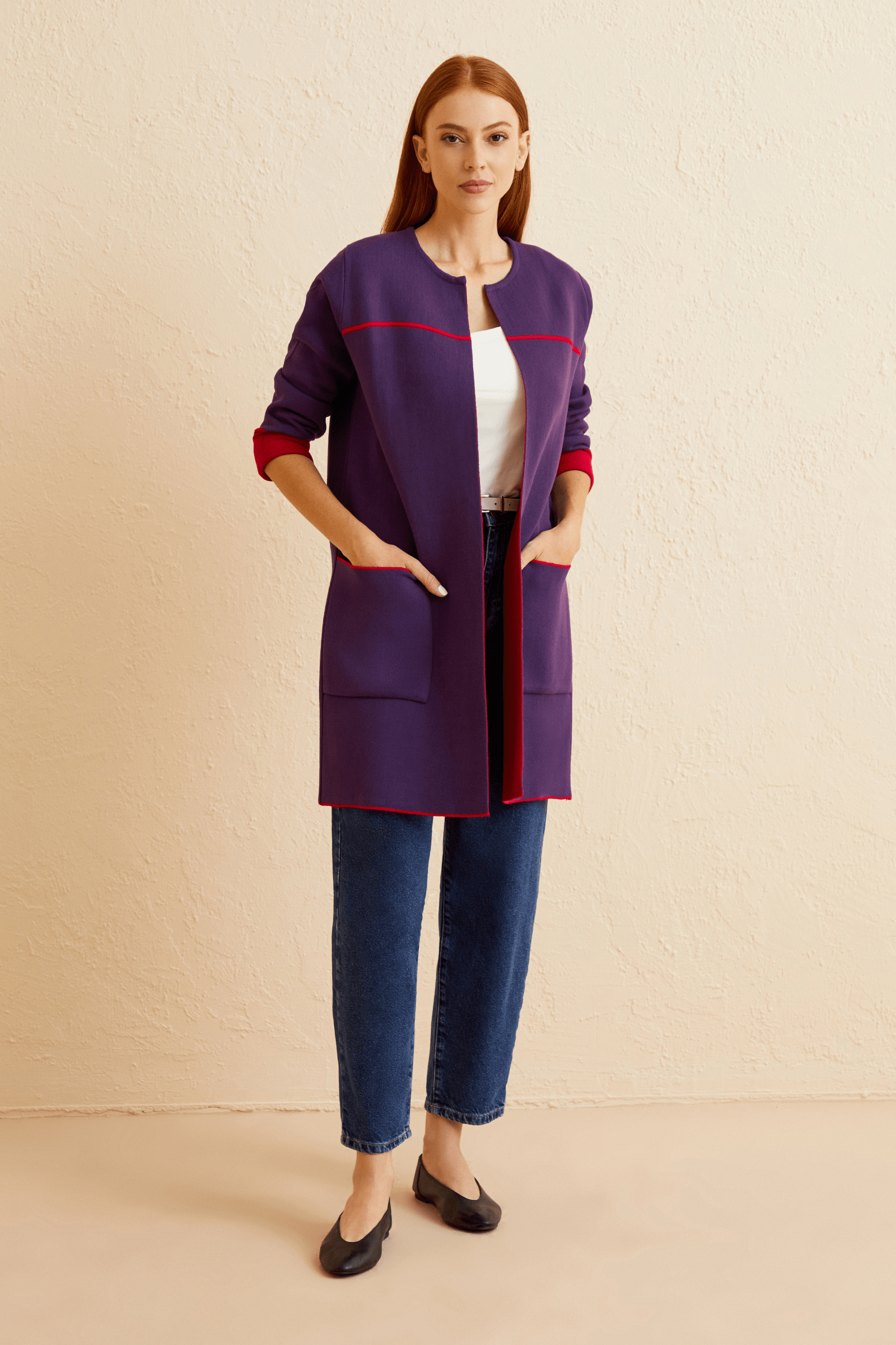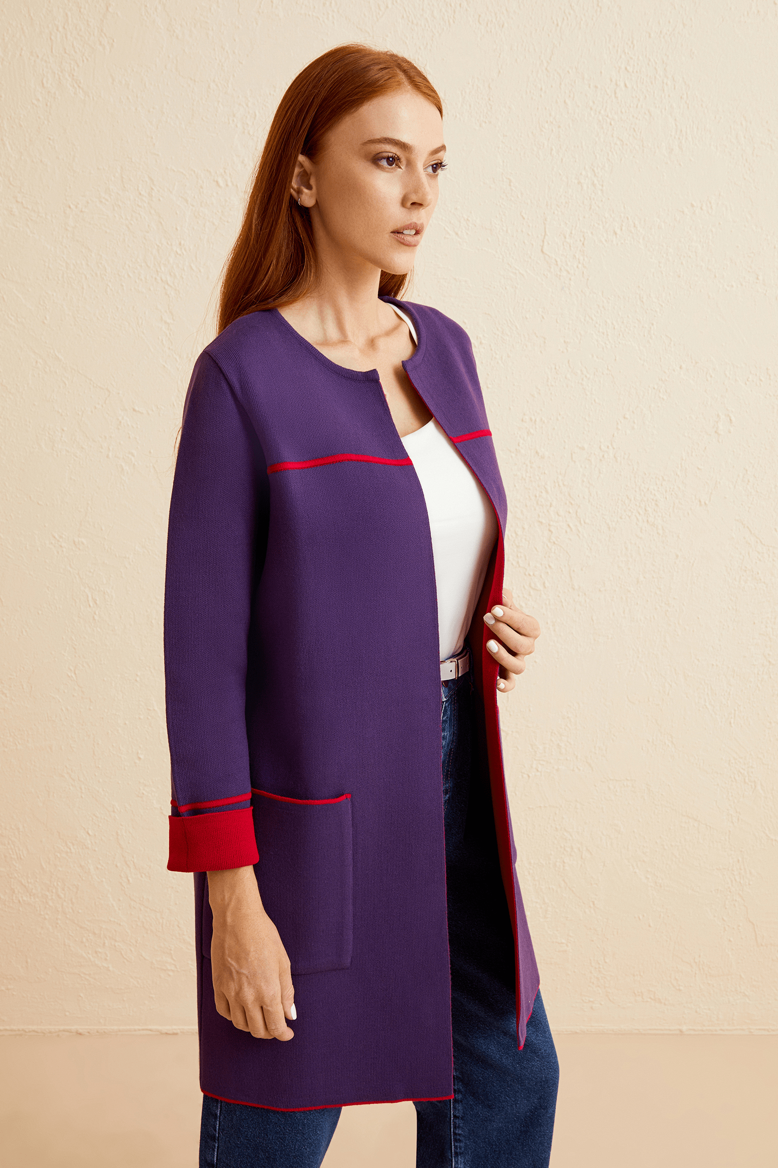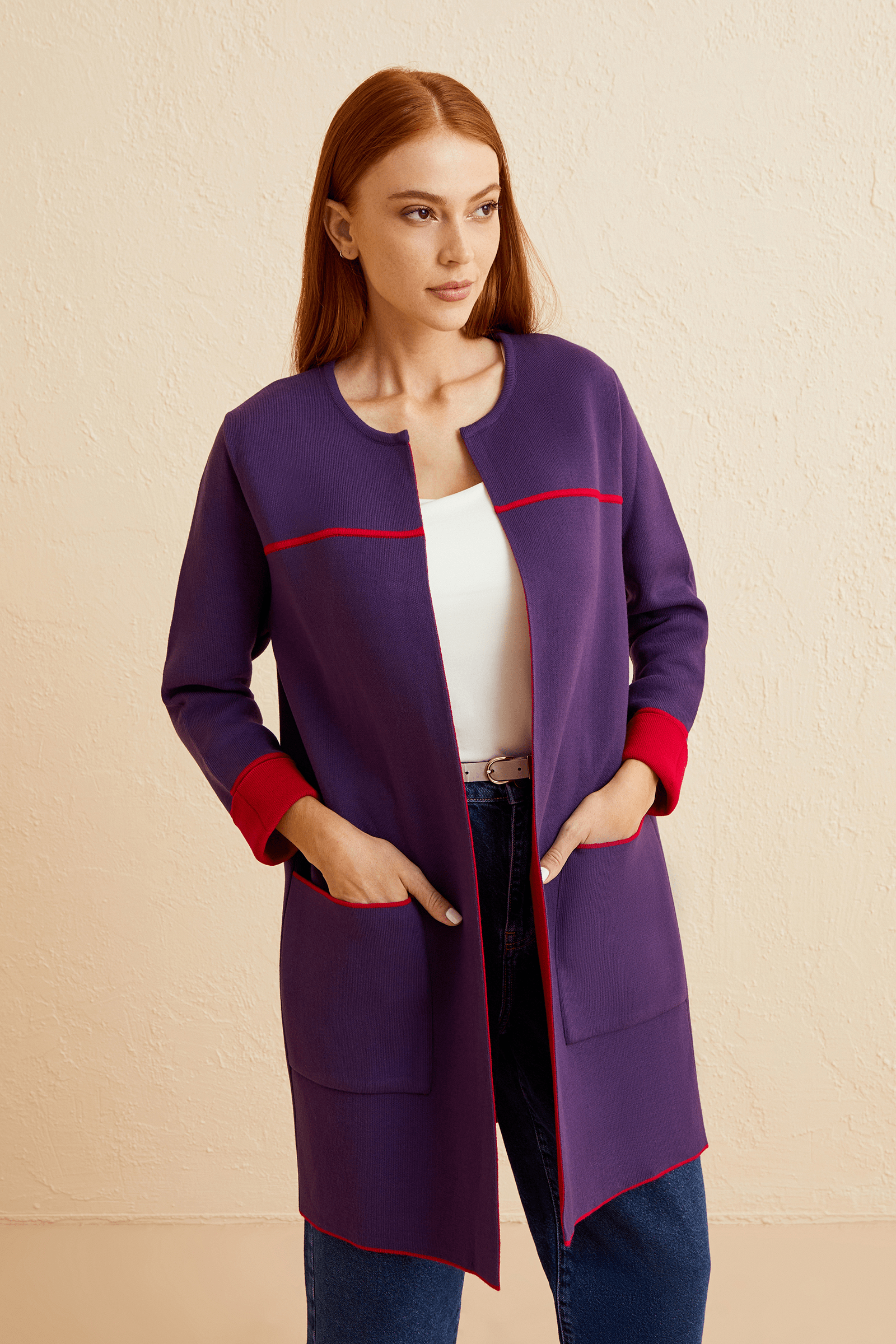 Kontrast Çizgili Triko Hırka