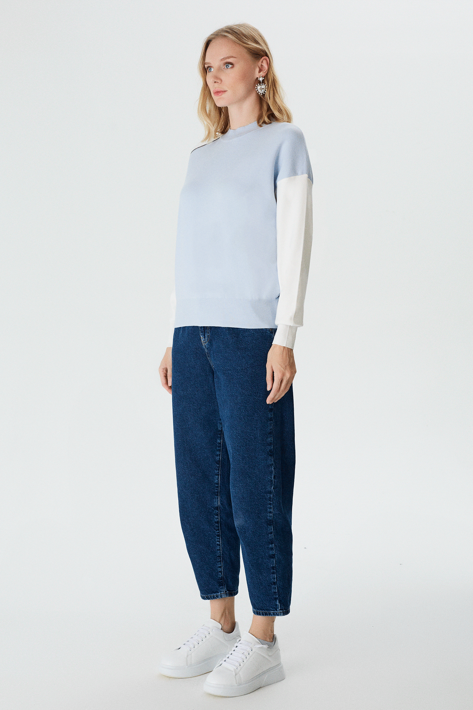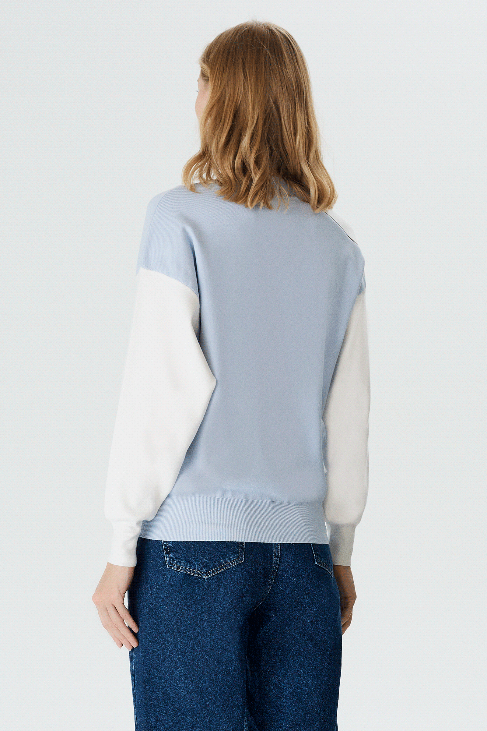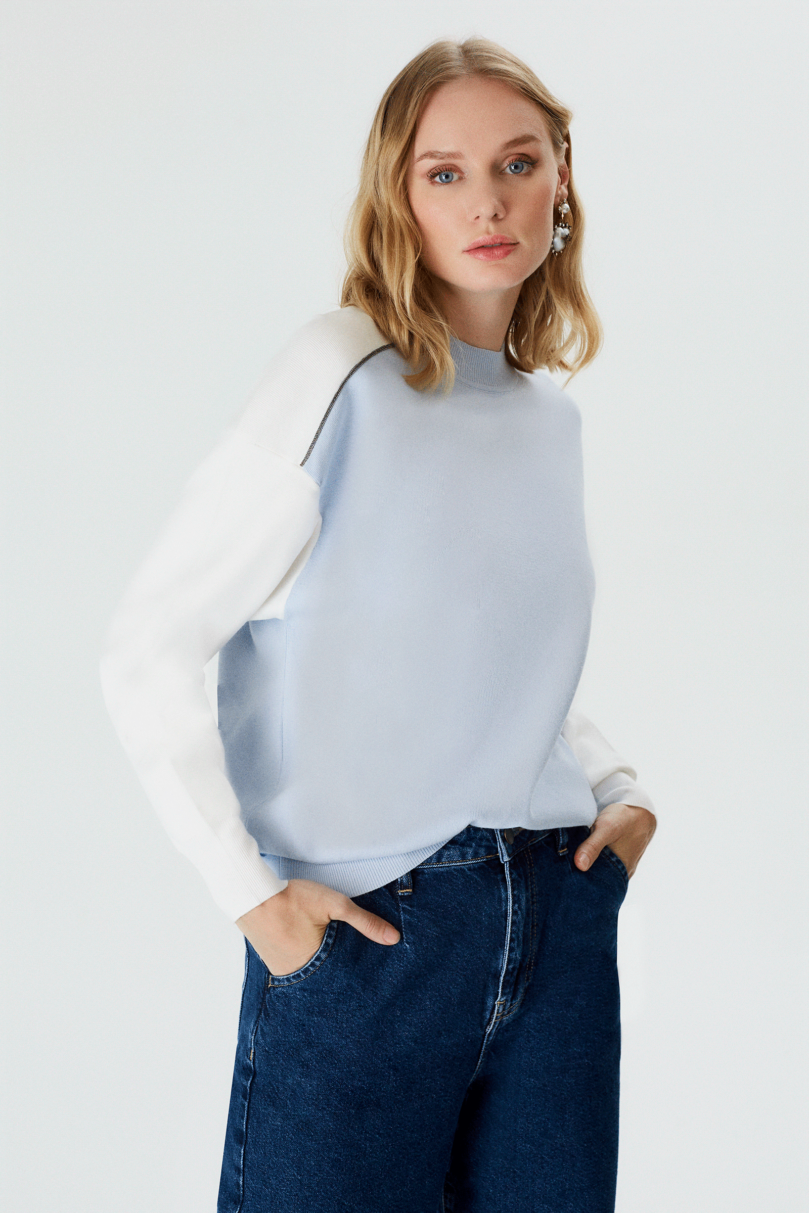 Asimetrik Kontrast Renkli Triko Bluz