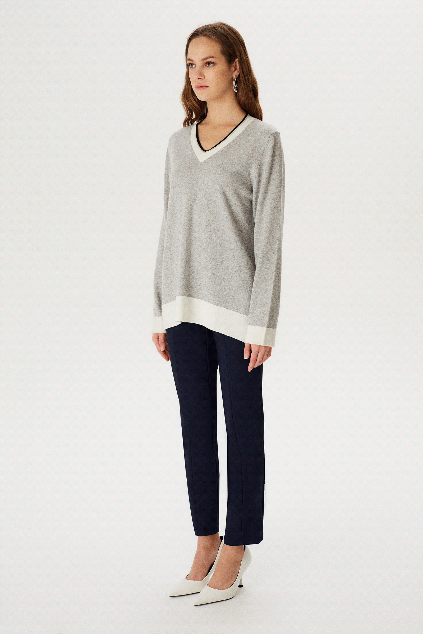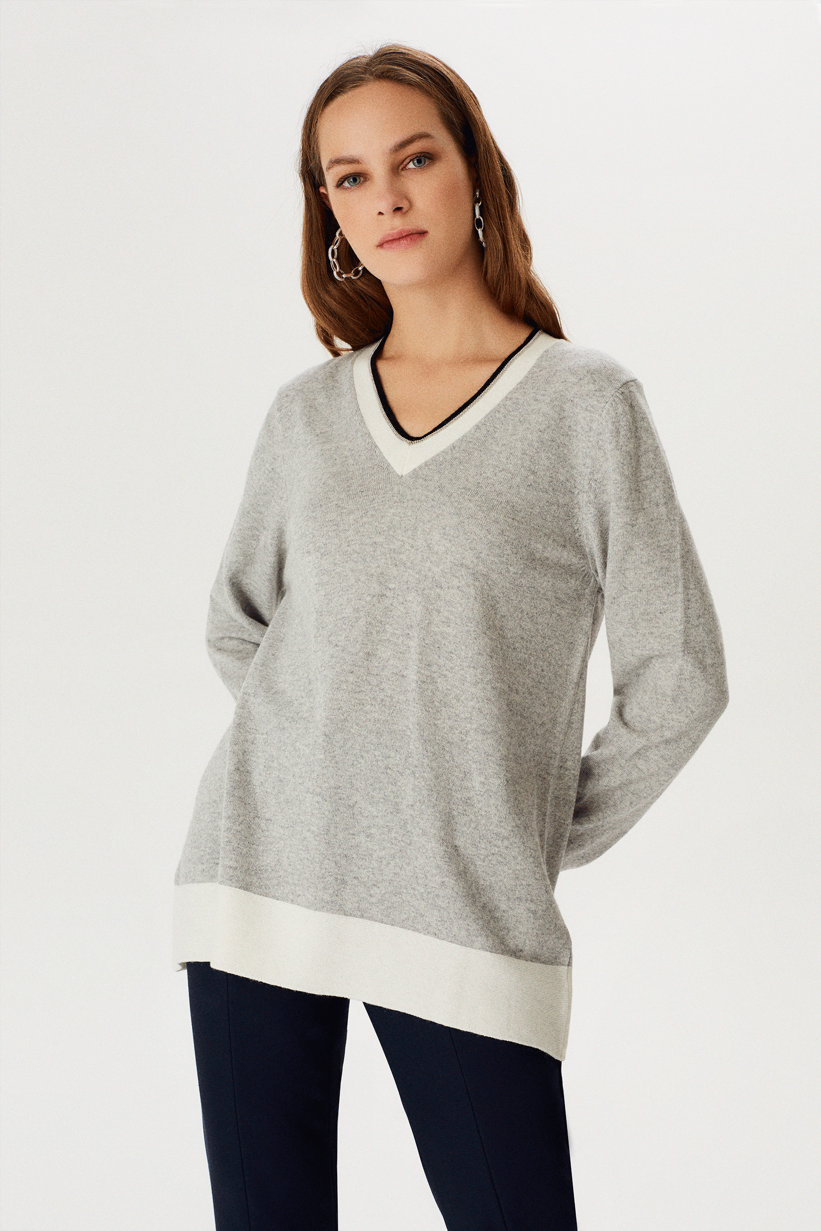 Zincir Detaylı V Yaka Triko Bluz