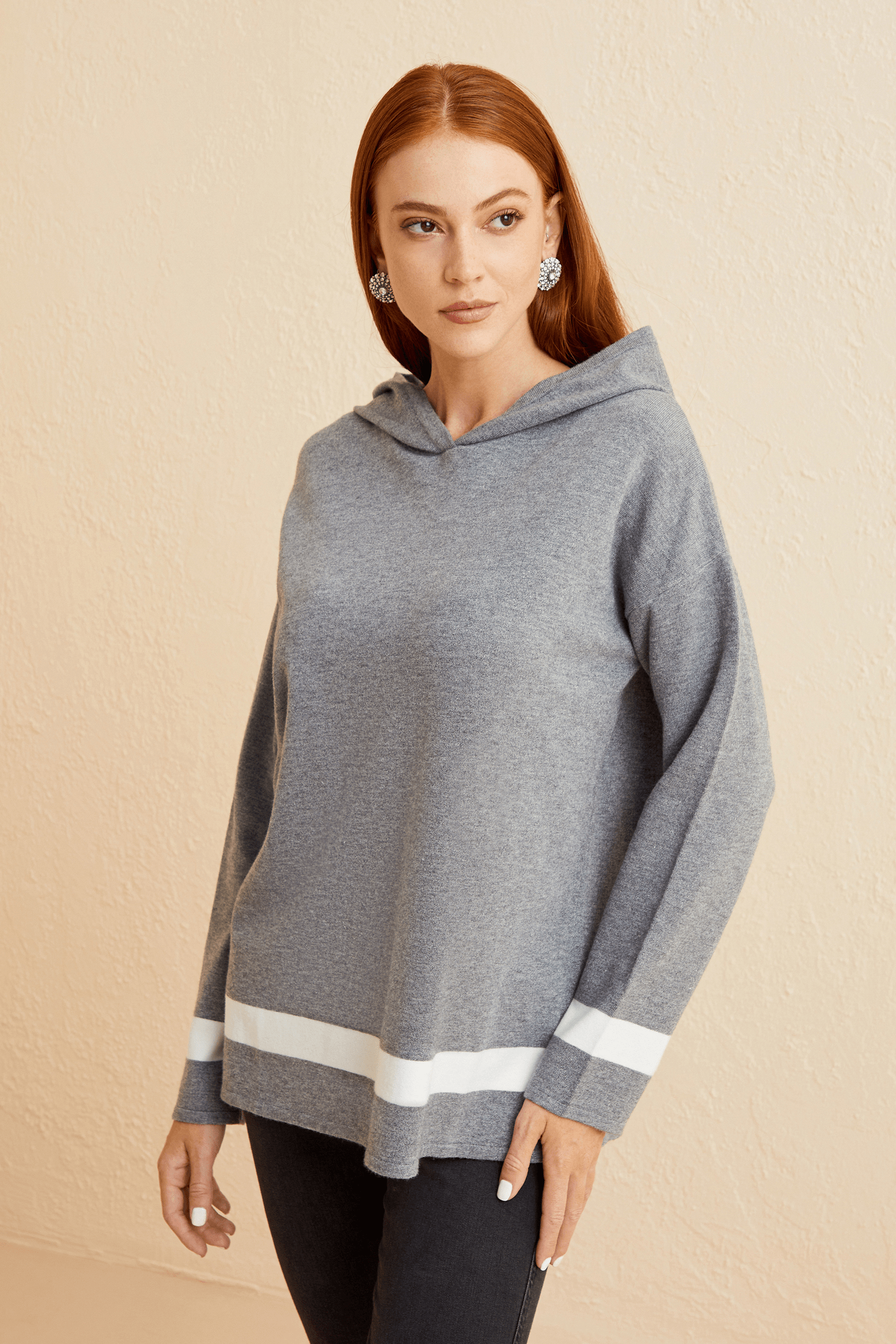 Kapüşonlu Triko Bluz