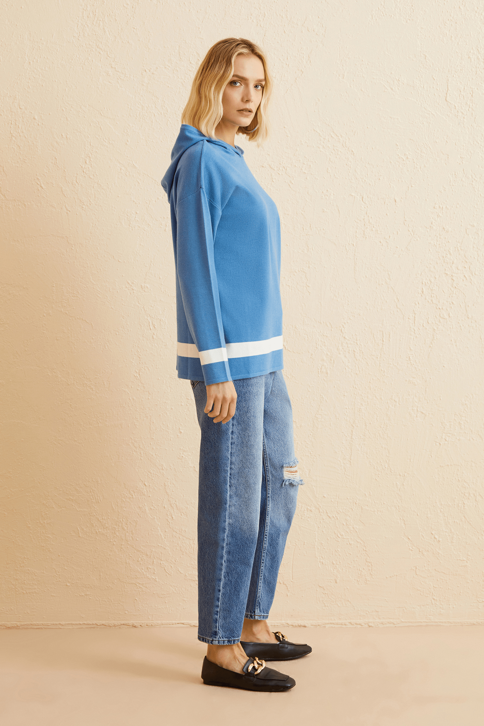 Kapüşonlu Triko Bluz