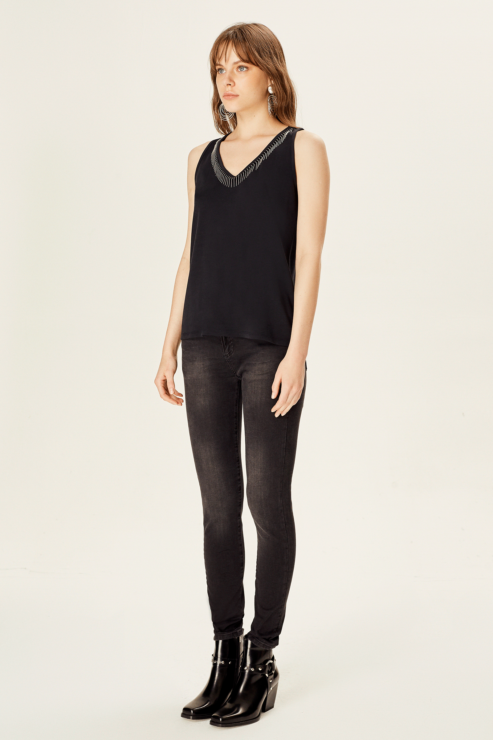 Zincir Aksesuarlı Kolsuz Penye Bluz