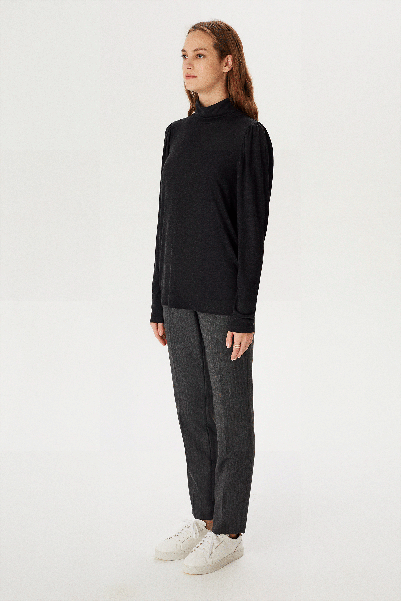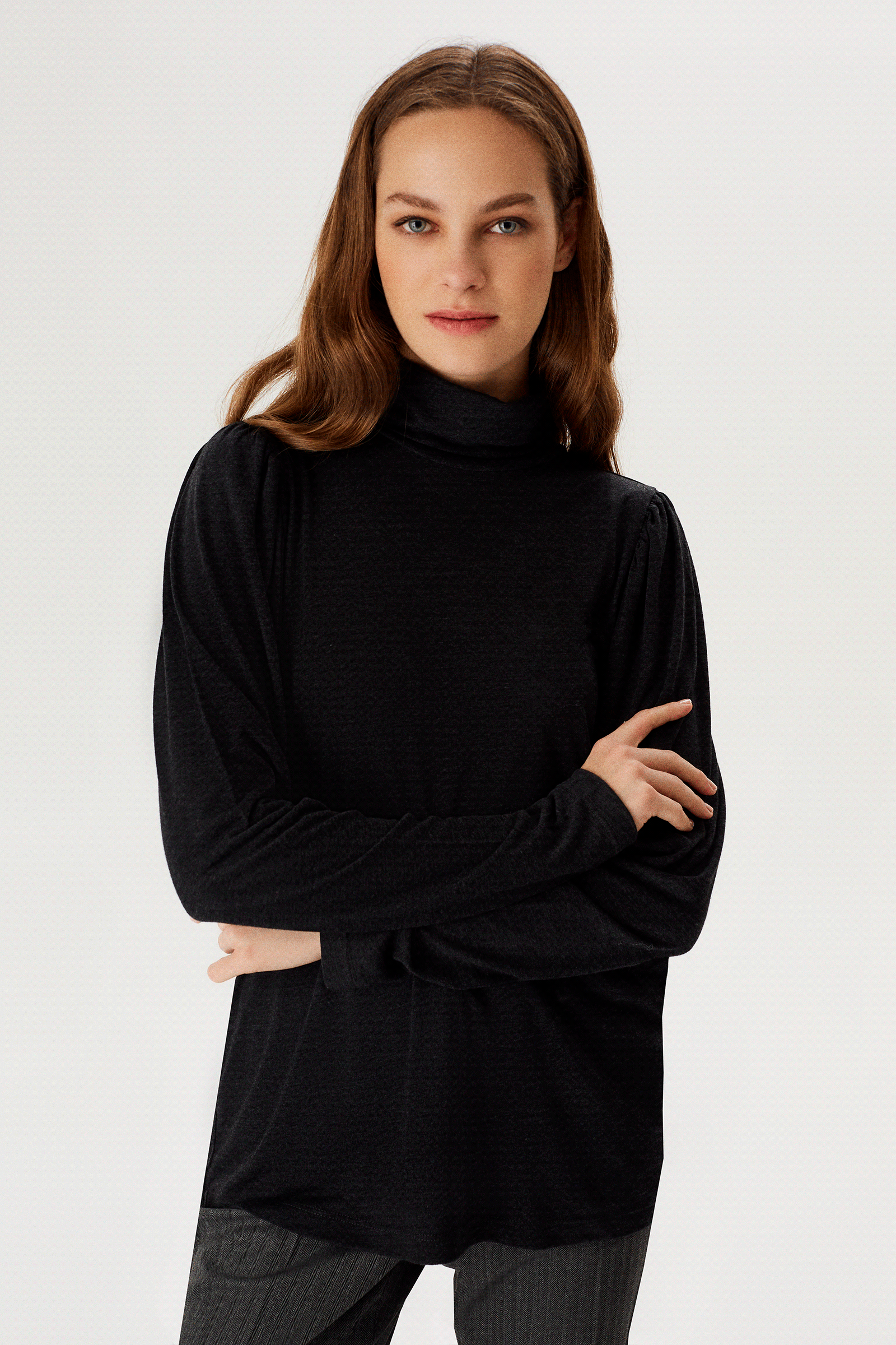 Balıkçı Yaka Omuzlar Büzgülü Penye Bluz
