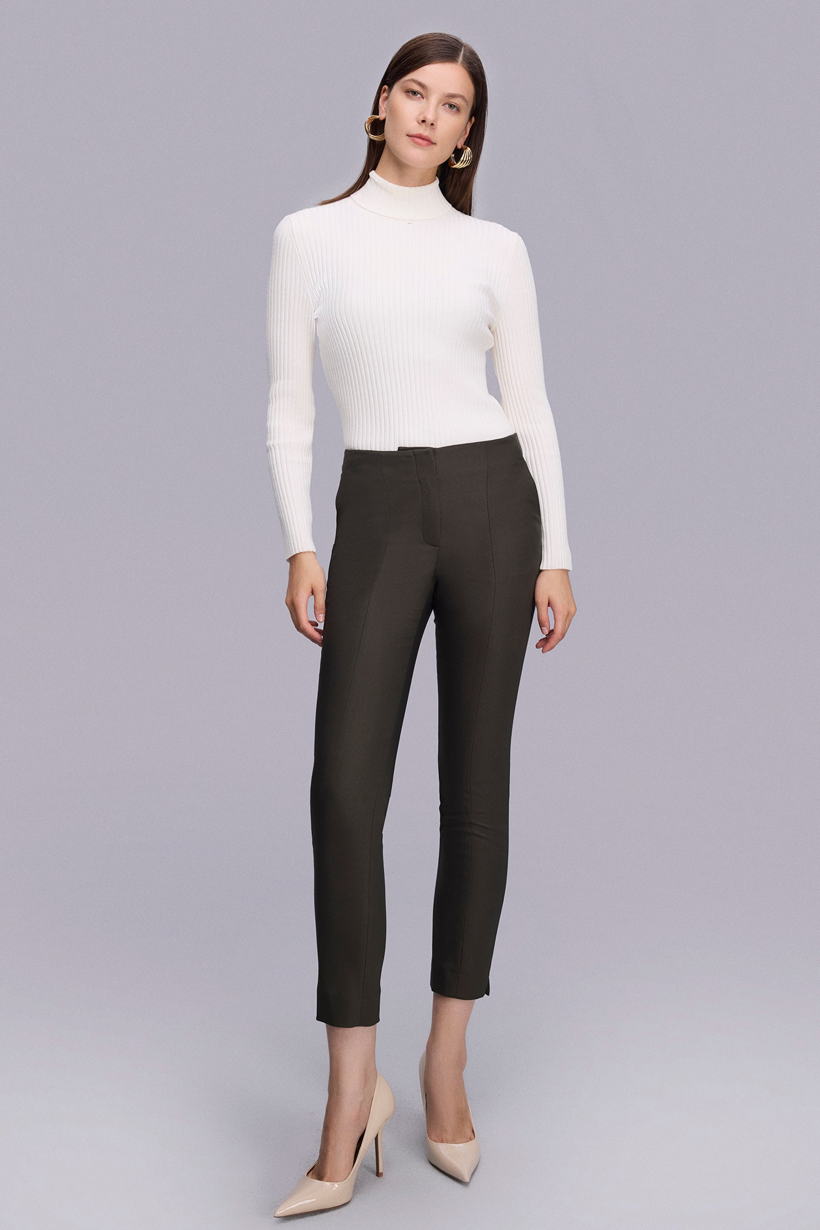 Önü Kesikli Klasik Haki Pantolon