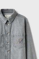 Taş Baskılı Gri Denim Ceket