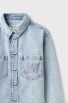 Taş Baskılı Gri Denim Ceket