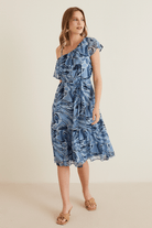 Tek Omuz Dekolteli Fırfırlı Midi Boy Elbise