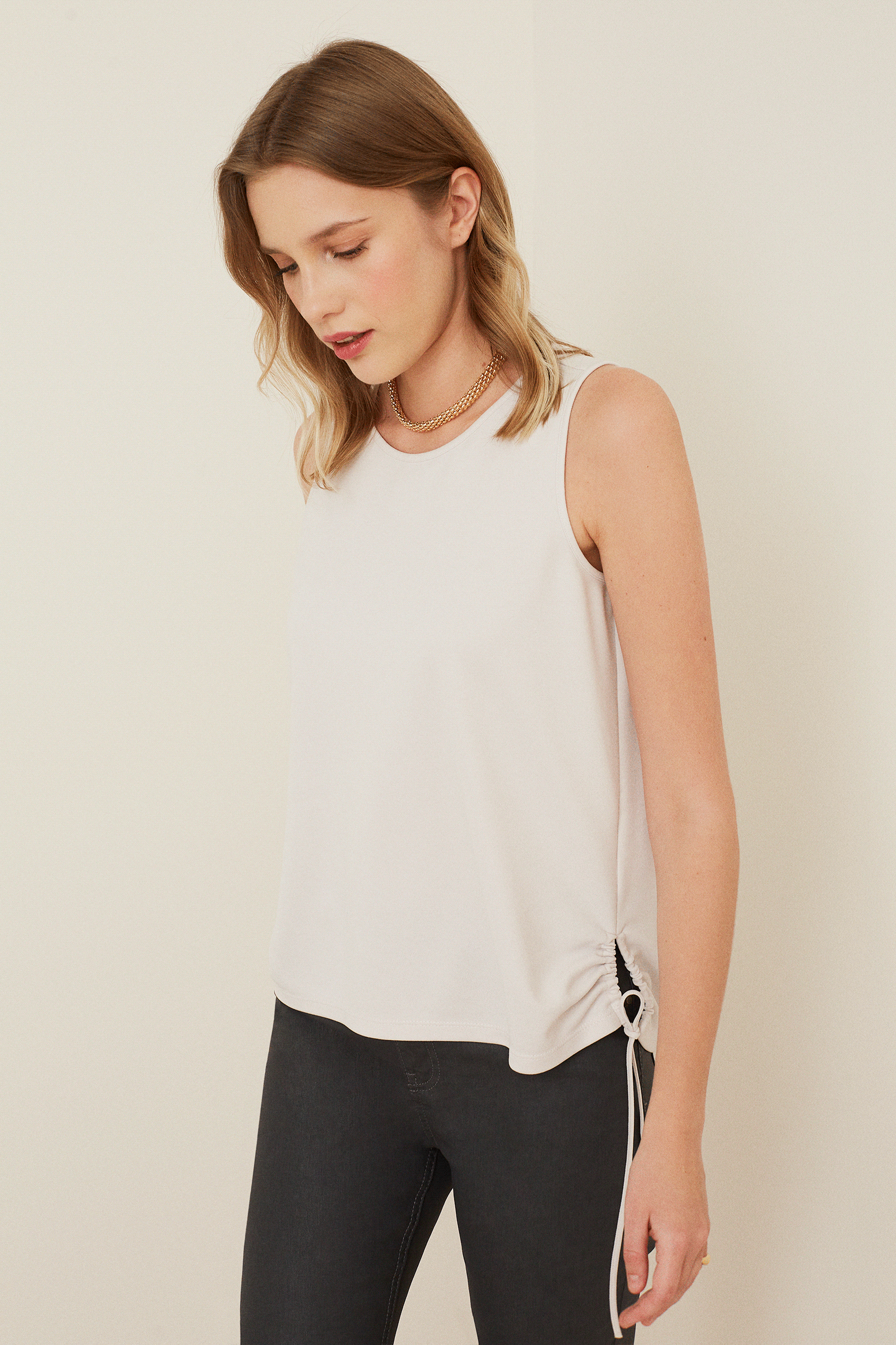 Yanları Bağlamalı Kolsuz Penye Bluz