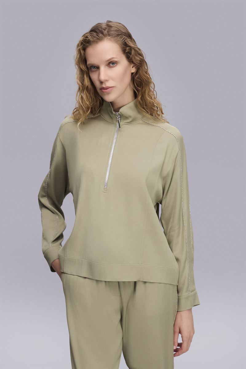 Kolları Piliseli Haki Bluz