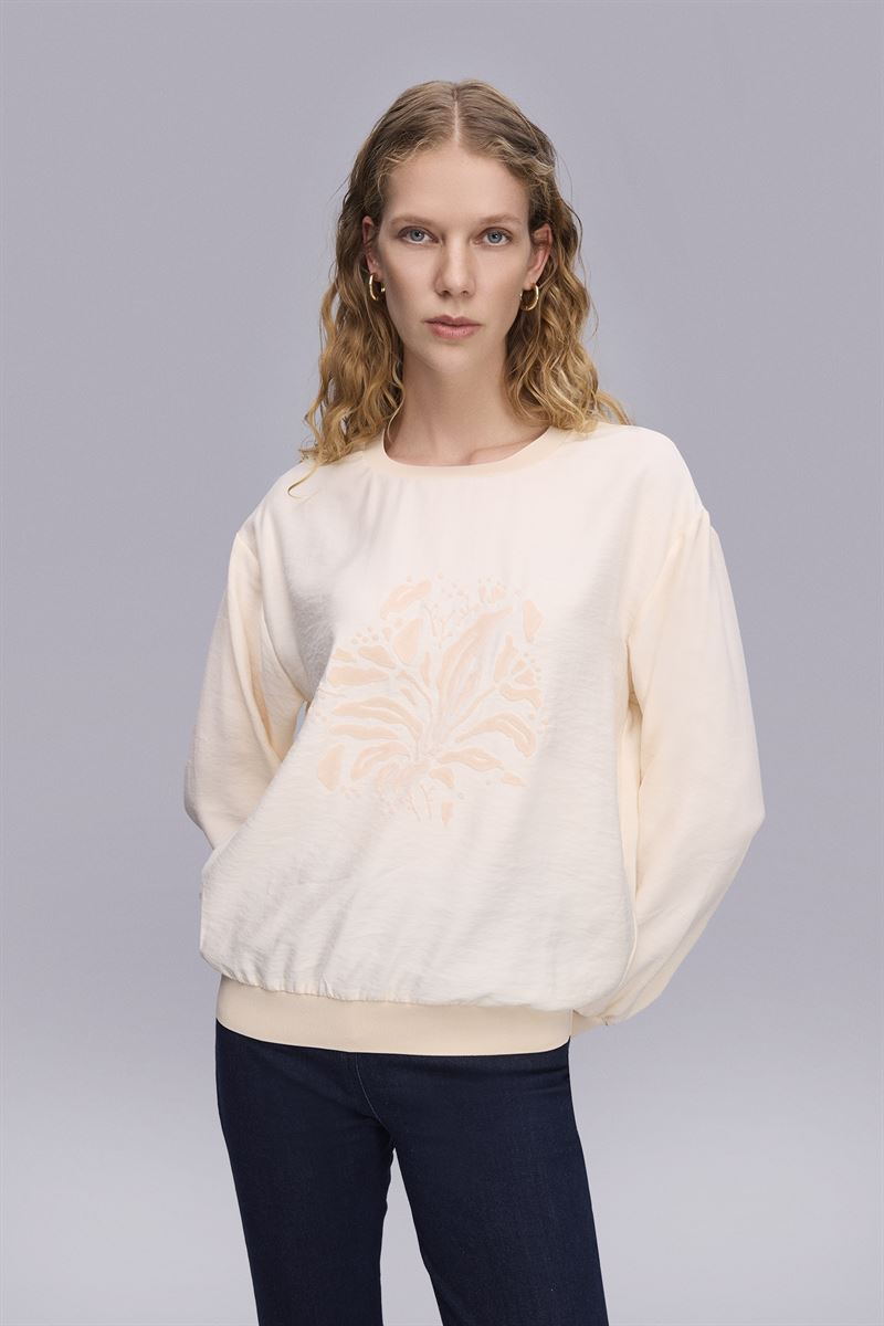 Flok Bakılı Pudra Bluz