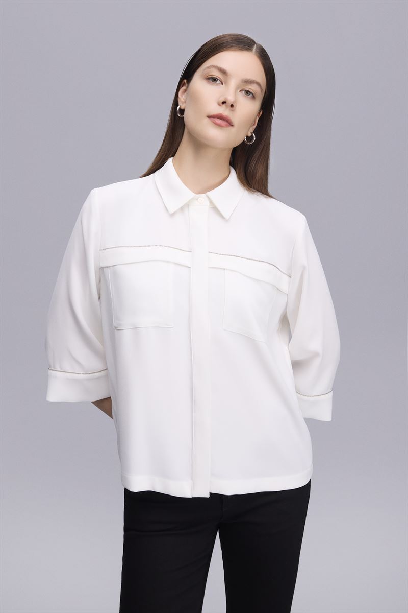 Yaka Aksesuar Detaylı Ekru Bluz